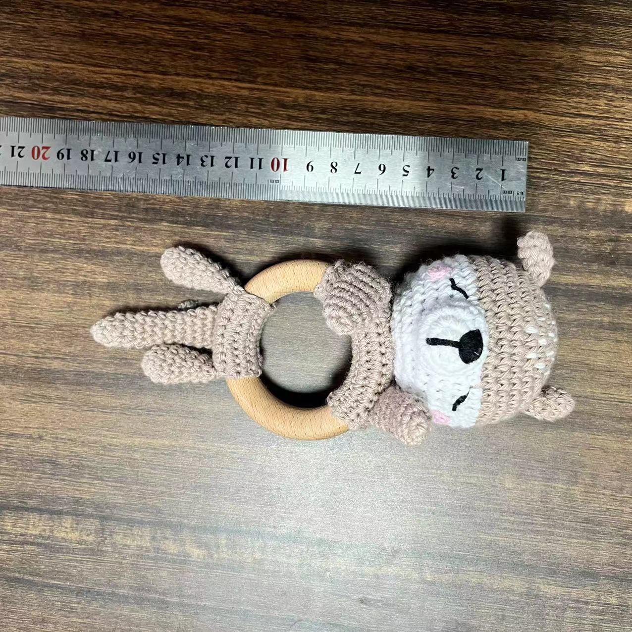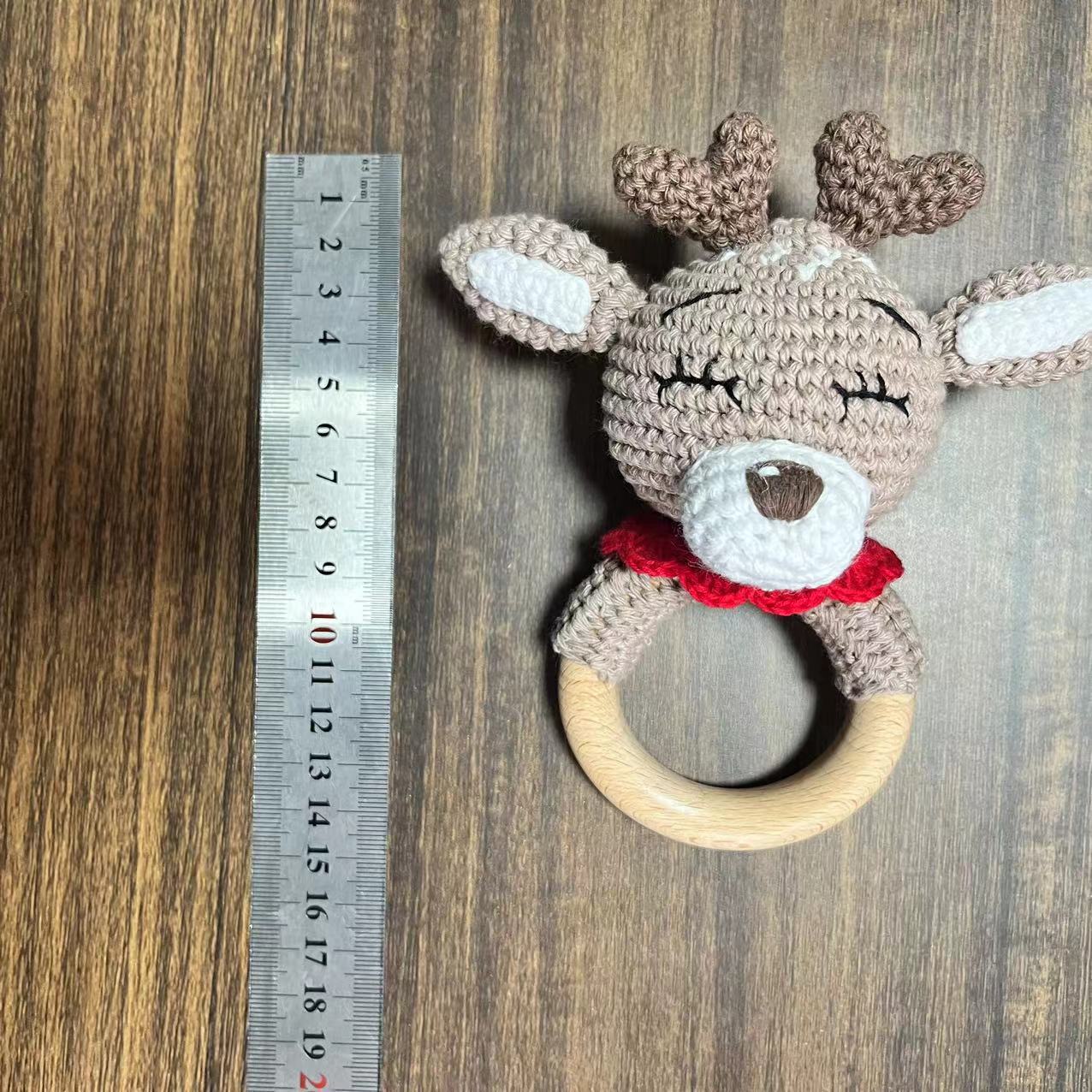 국경 간 이유식 등급 장난감 딸랑이 순수 수제 양모 크로 셰 뜨개질 아기 진정 치아 핸드 딸랑이 선물