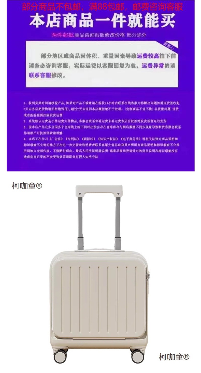 경량 18inch 여성용 전면 소형 오픈 여행용 트롤리 케이스 전면 박스 오픈 커버 비밀번호 상자 남성용 Metabo스토어 가기