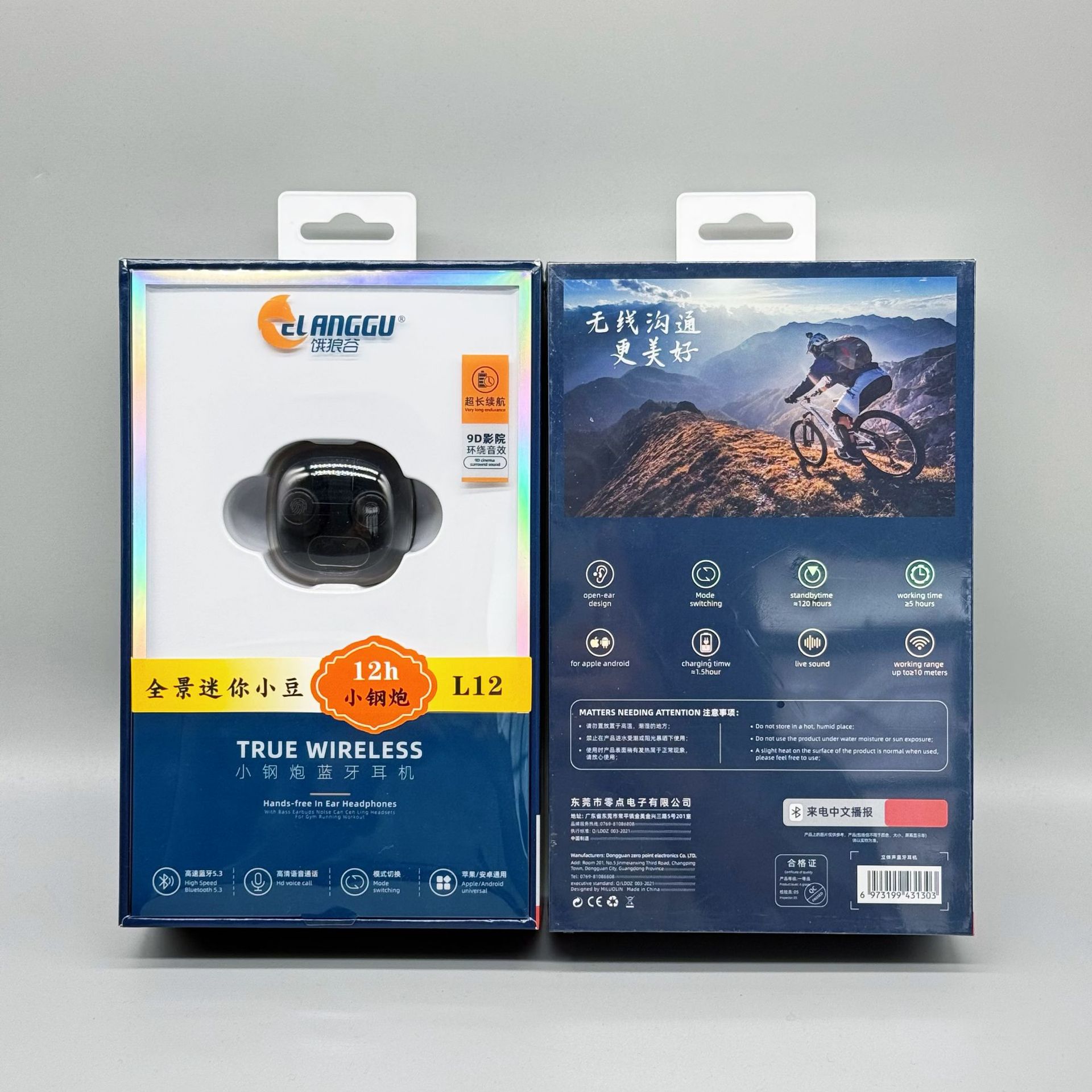 • 블랙 L12 [미니 소형 강철 대포 바이노럴 블루투스 헤드셋] 매우 긴 배터리 수명과 절묘한 포장