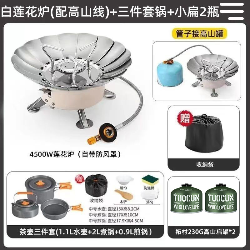 • *[업그레이드 모델] 방풍 연꽃 난로 [장기 가스 파이프] + 가스 2개 + 찻주전자 3종 세트
