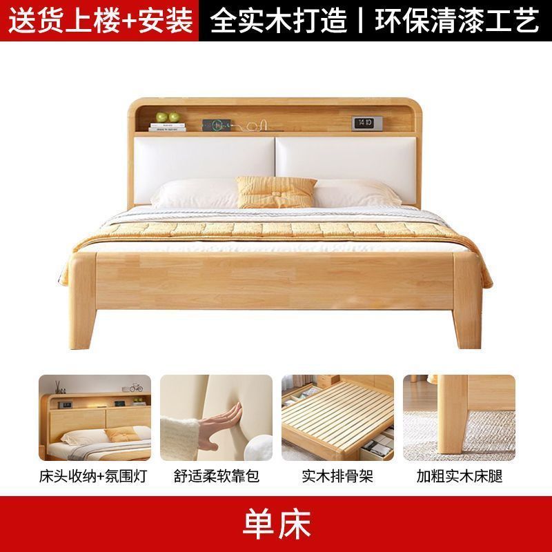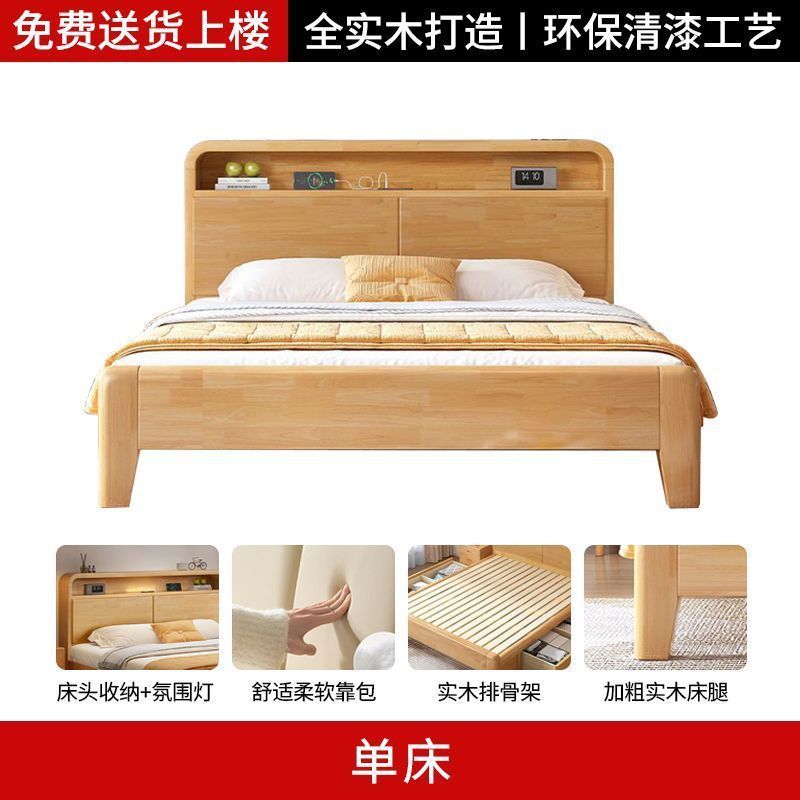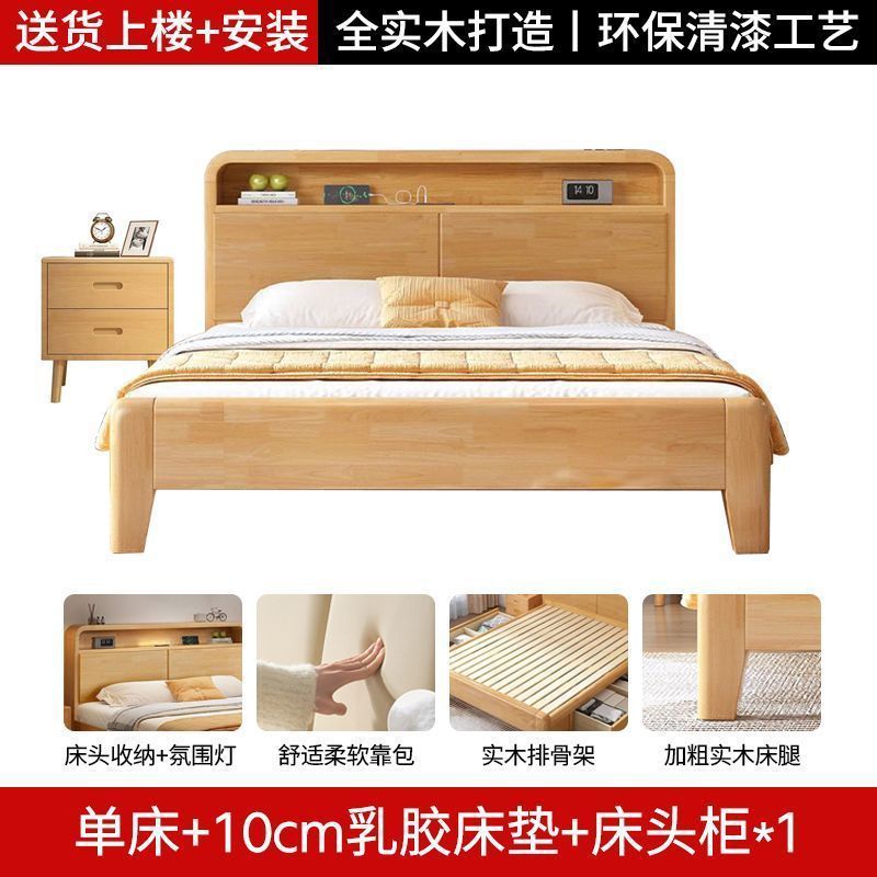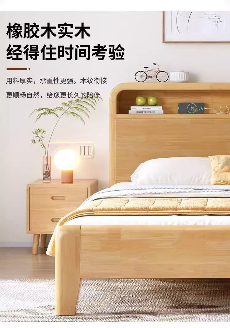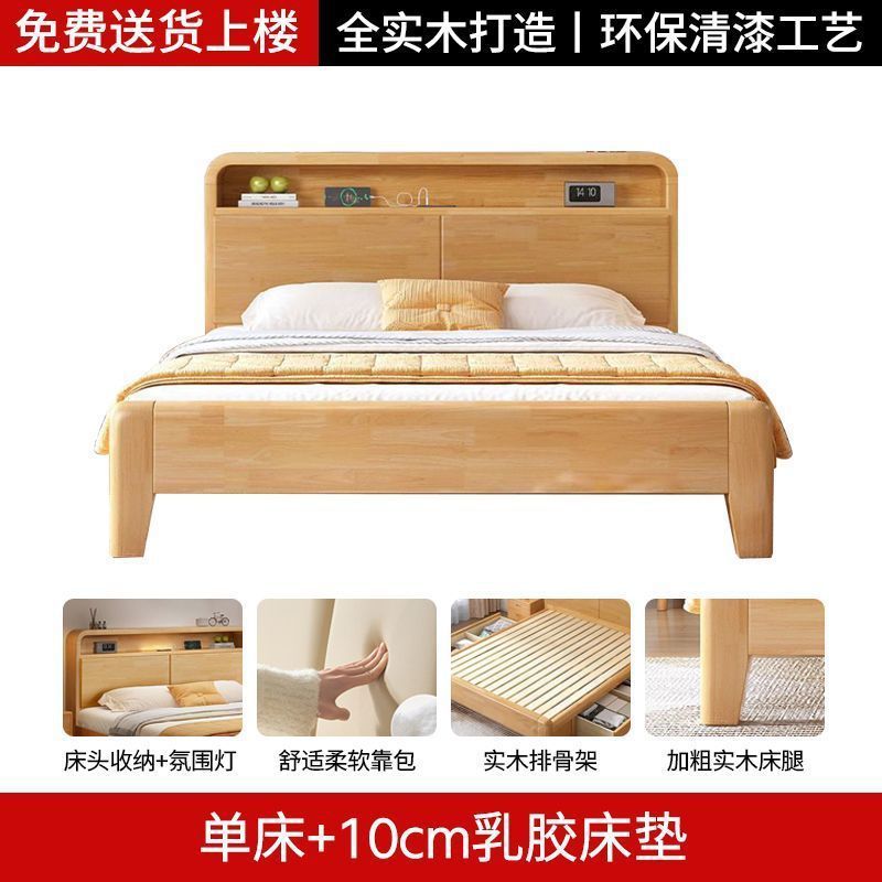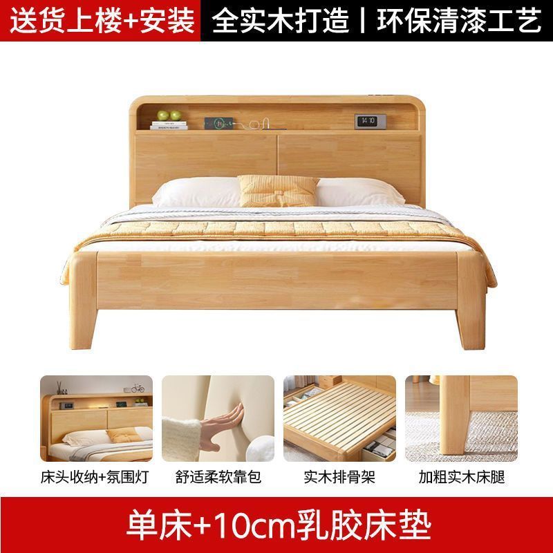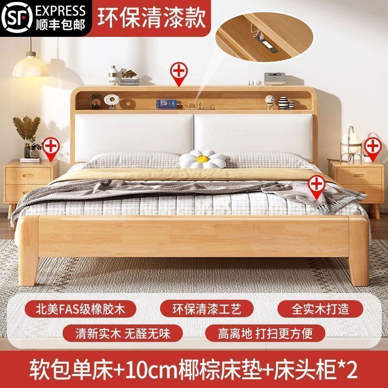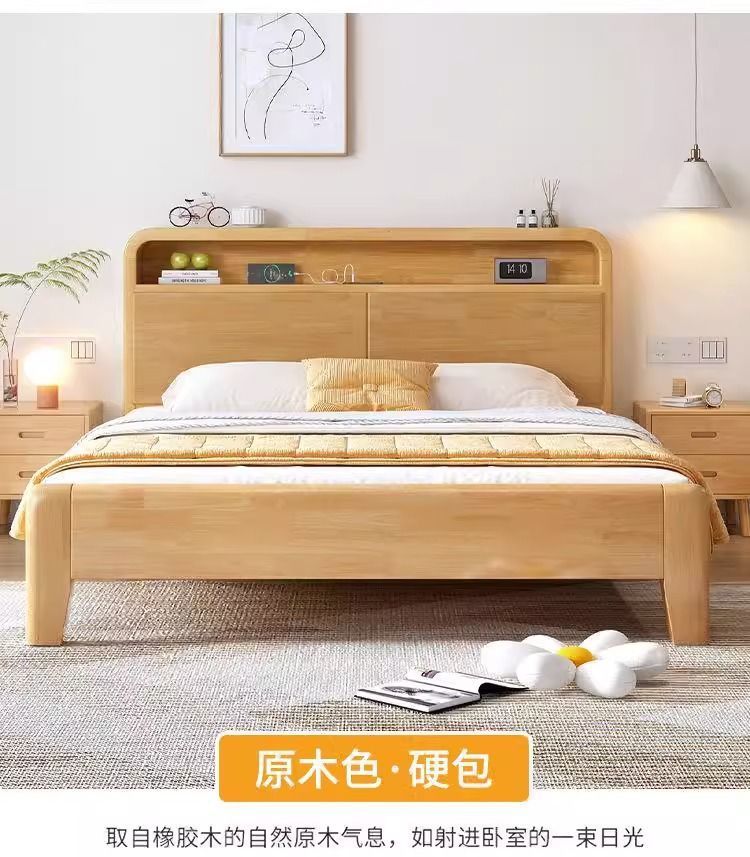 간단한 모든 단단한 나무 침대 1.5m 가정용 고무 나무 침대 1.8x 2m 마스터 침실 대형 침대 1.2M 싱글 어린이 침대스토어 가기