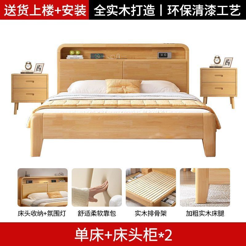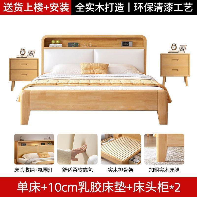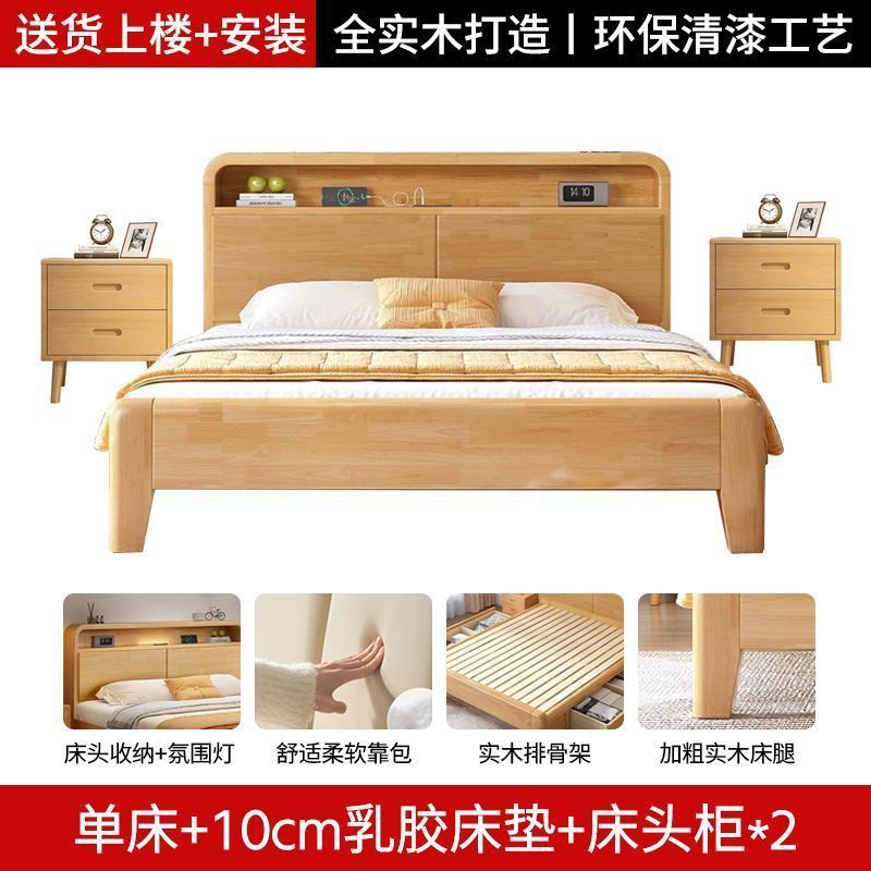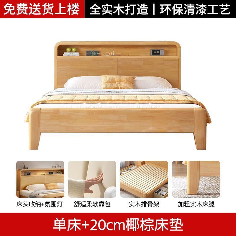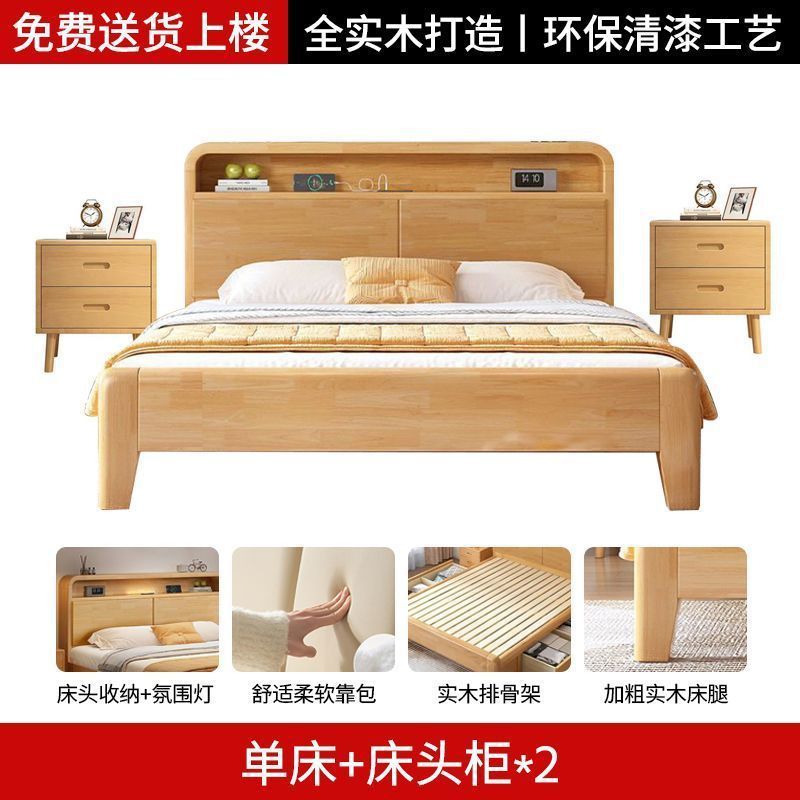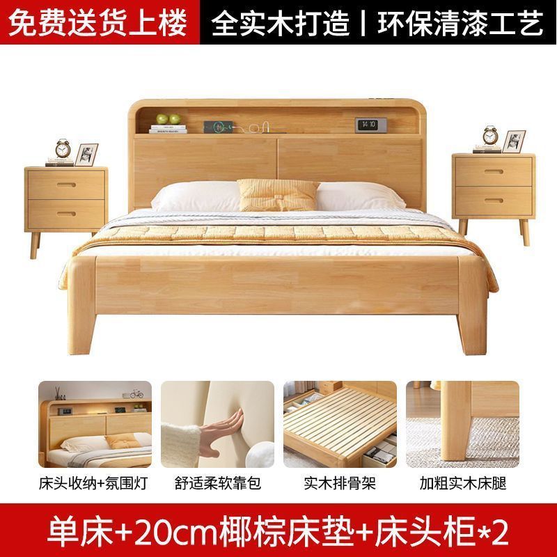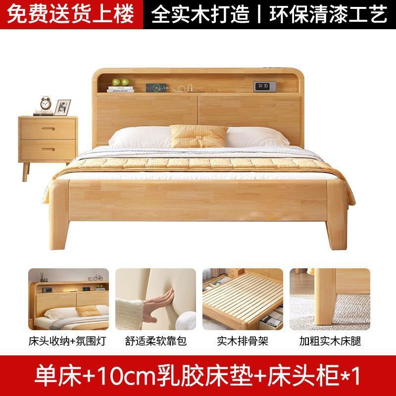 간단한 모든 단단한 나무 침대 1.5m 가정용 고무 나무 침대 1.8x 2m 마스터 침실 대형 침대 1.2M 싱글 어린이 침대스토어 가기