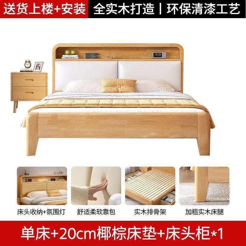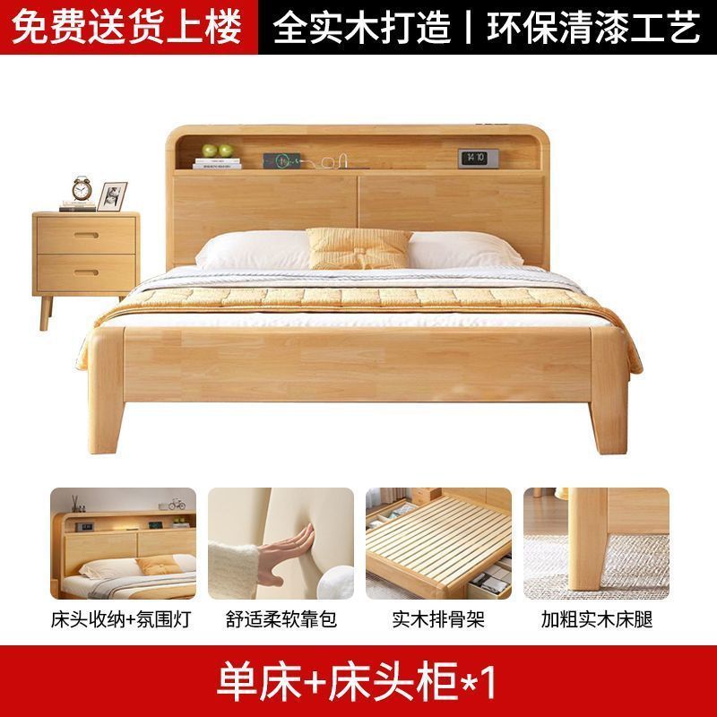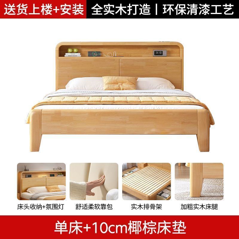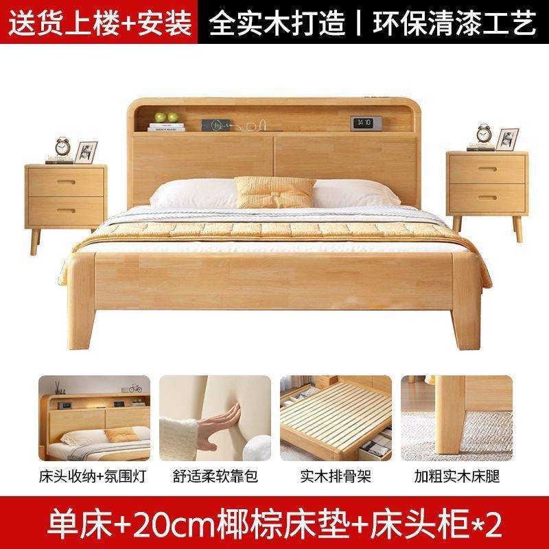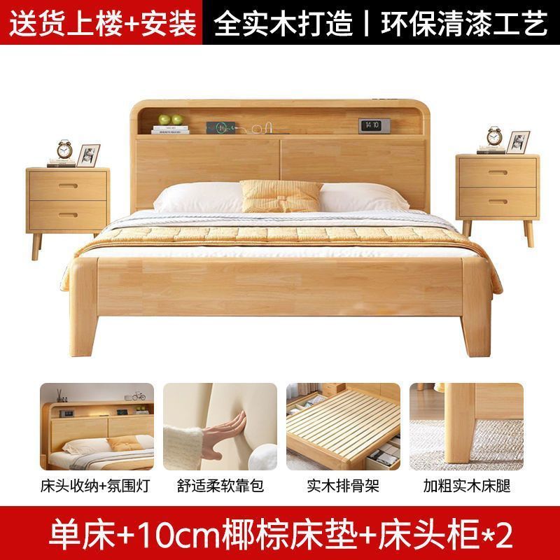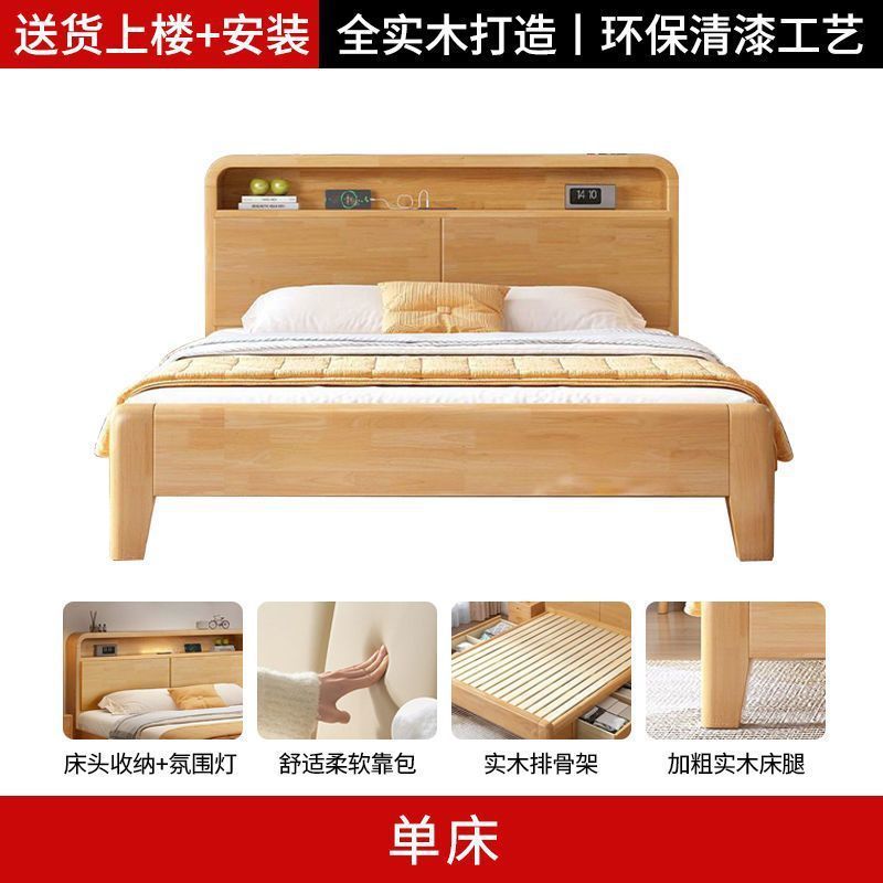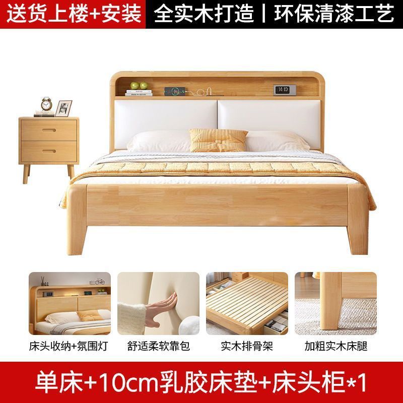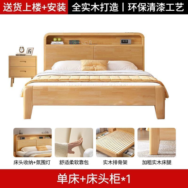 간단한 모든 단단한 나무 침대 1.5m 가정용 고무 나무 침대 1.8x 2m 마스터 침실 대형 침대 1.2M 싱글 어린이 침대스토어 가기