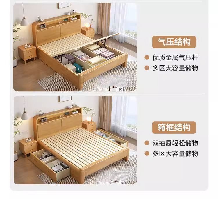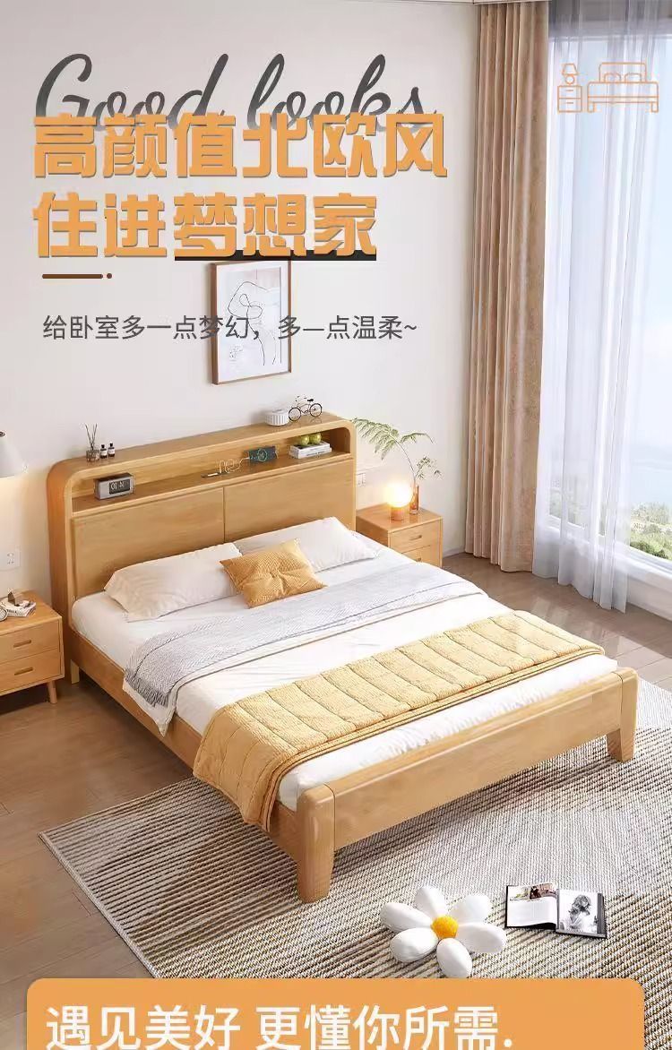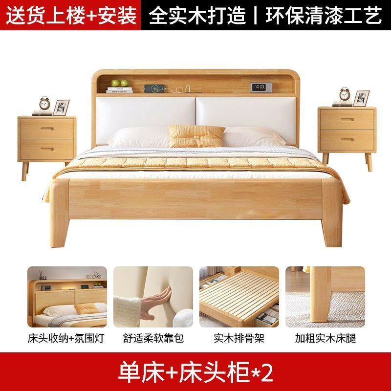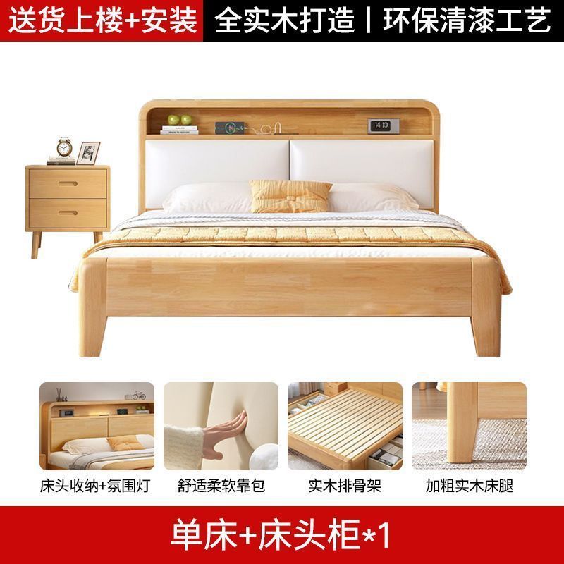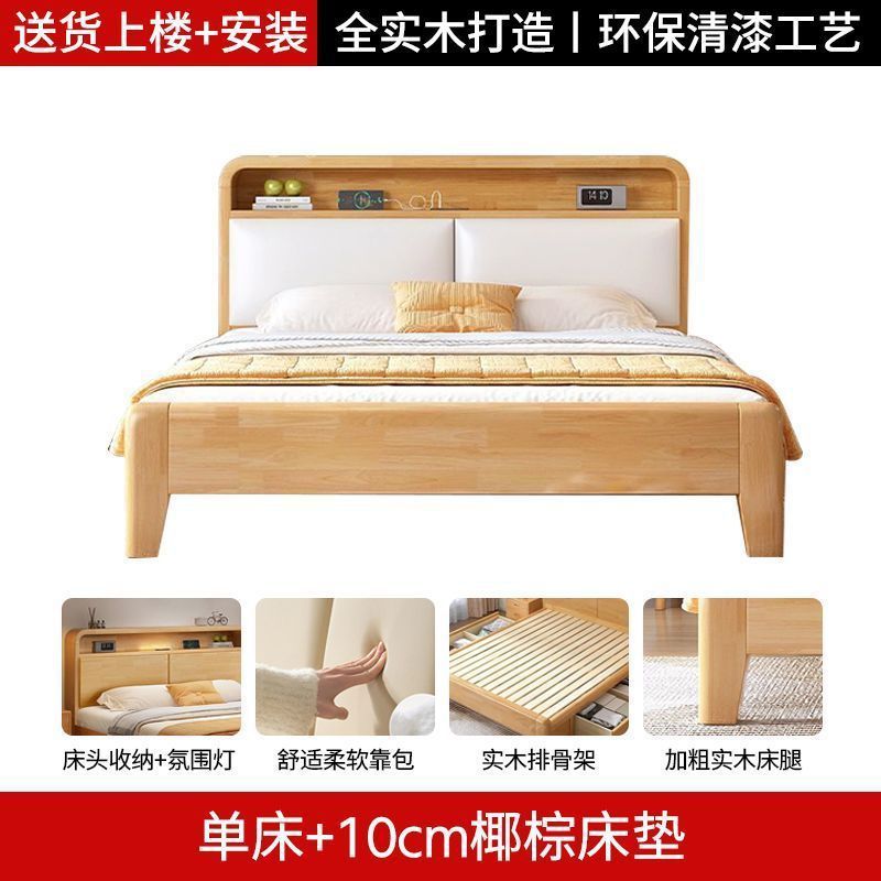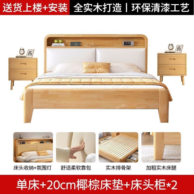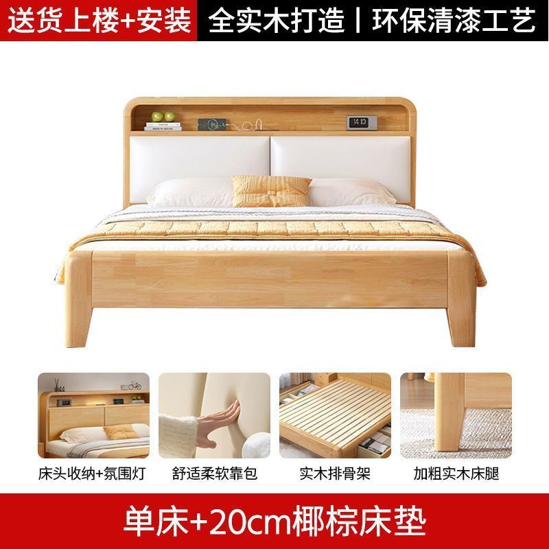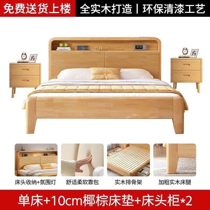 간단한 모든 단단한 나무 침대 1.5m 가정용 고무 나무 침대 1.8x 2m 마스터 침실 대형 침대 1.2M 싱글 어린이 침대스토어 가기