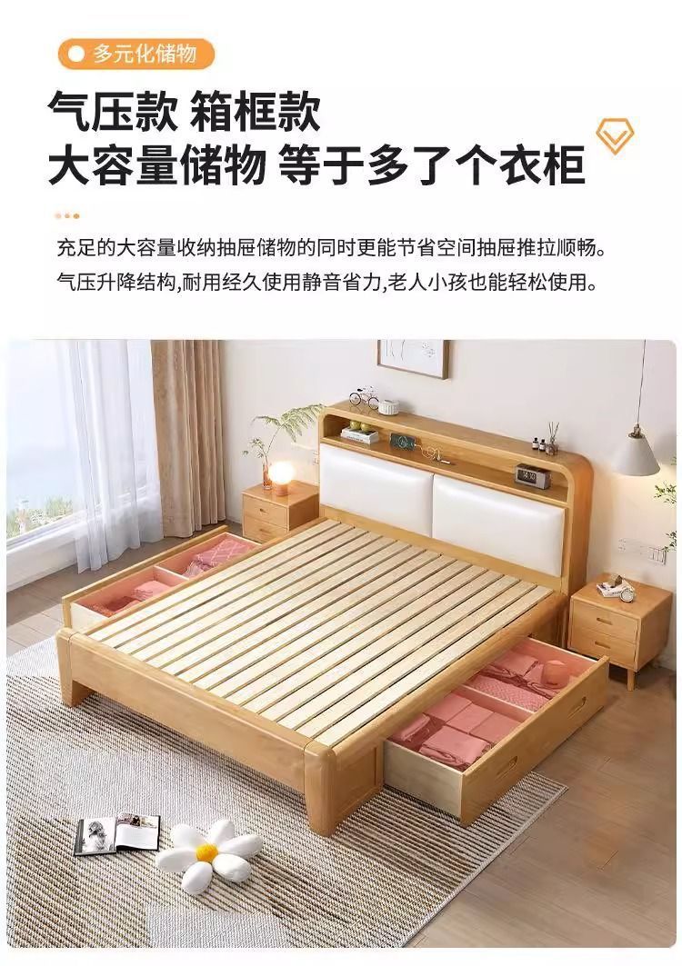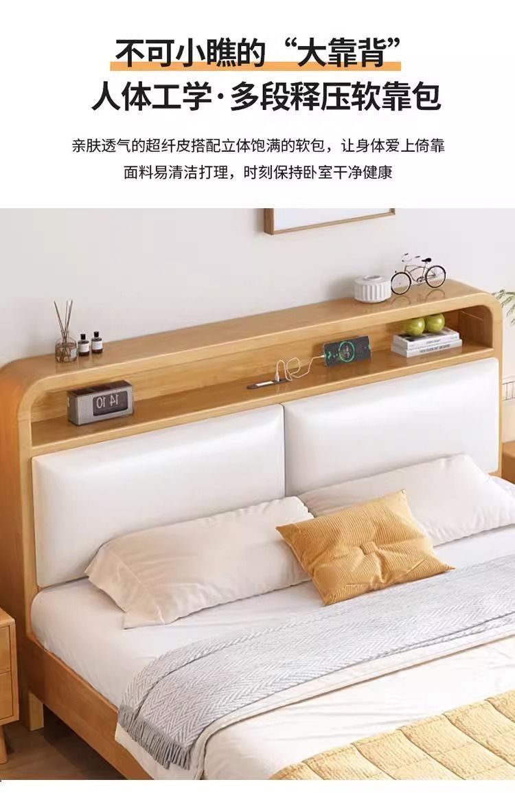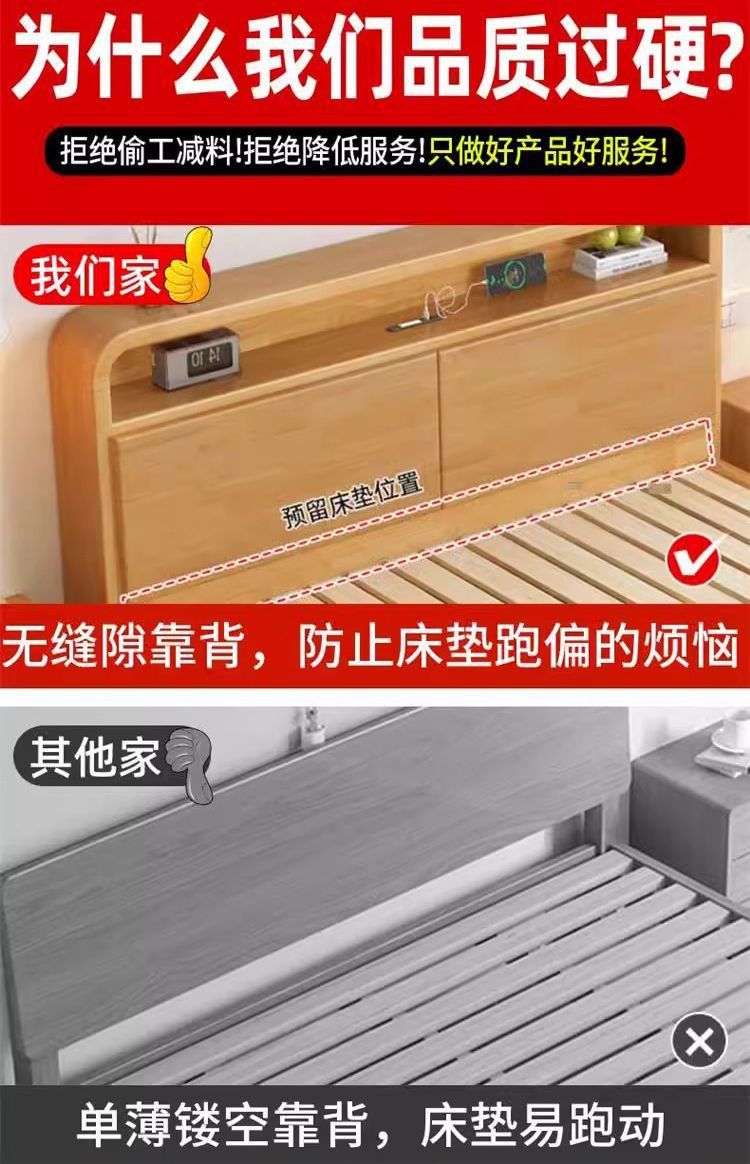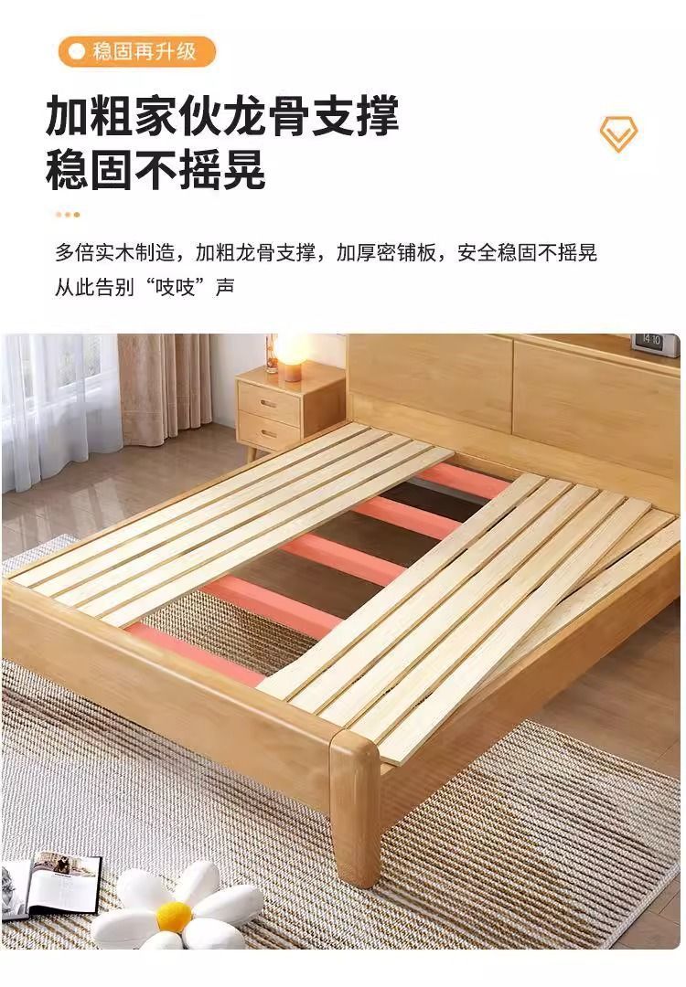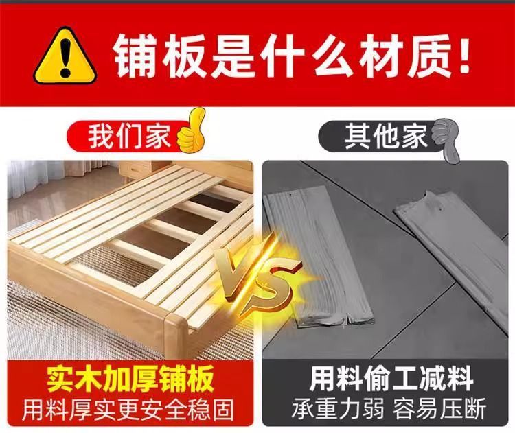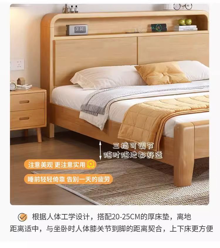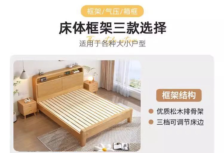 간단한 모든 단단한 나무 침대 1.5m 가정용 고무 나무 침대 1.8x 2m 마스터 침실 대형 침대 1.2M 싱글 어린이 침대스토어 가기