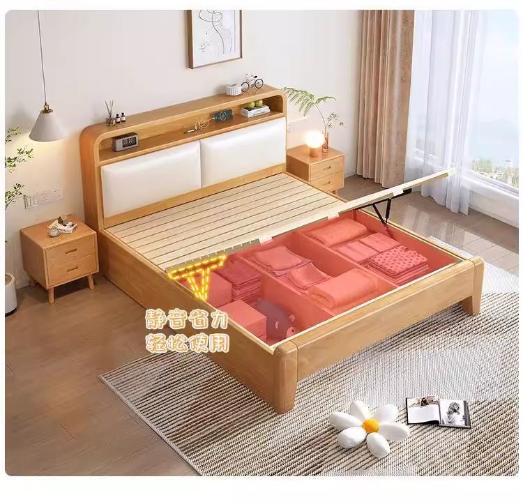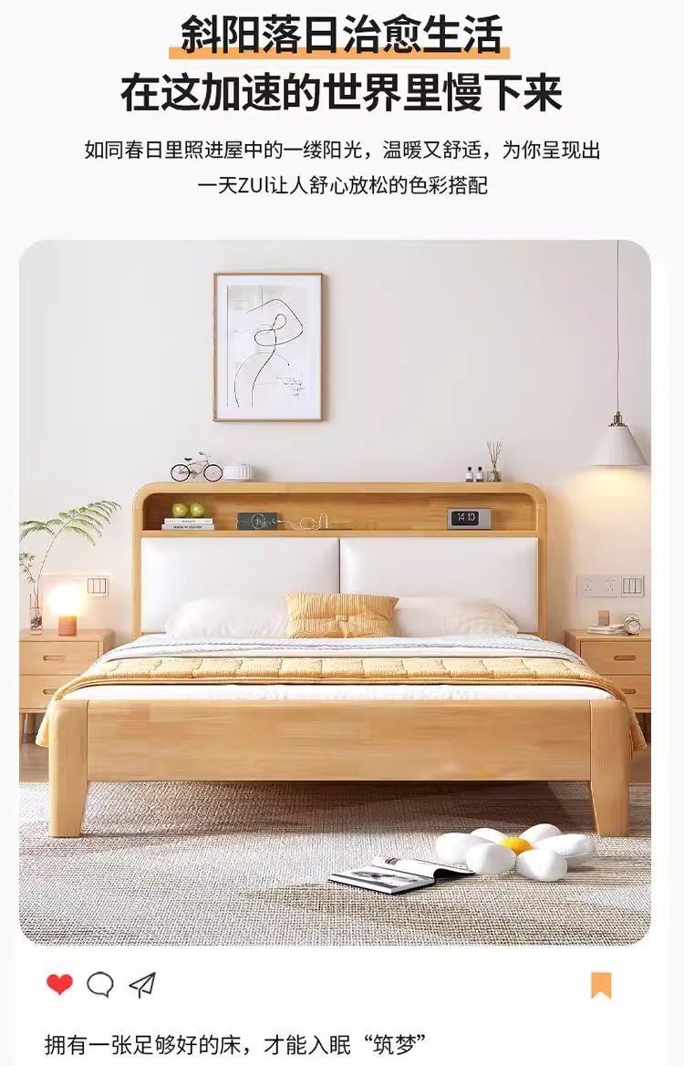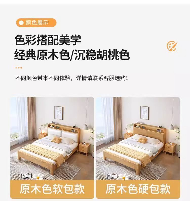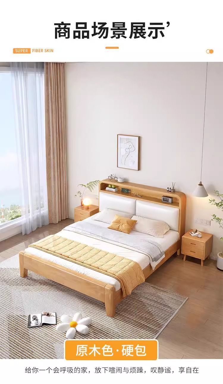 • 원목 고무나무 소프트 침대 [설치 포함]
