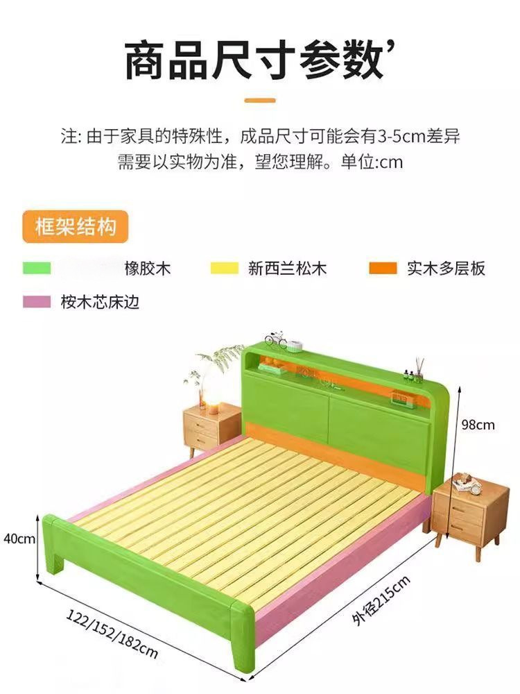 간단한 모든 단단한 나무 침대 1.5m 가정용 고무 나무 침대 1.8x 2m 마스터 침실 대형 침대 1.2M 싱글 어린이 침대