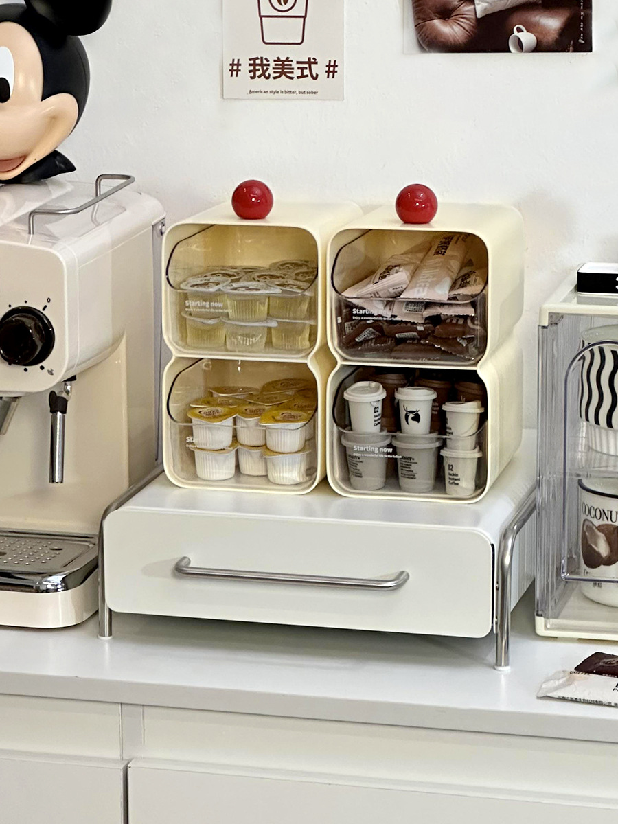 크림 스타일 티백 보관 상자 데스크탑 캡슐 커피 차 보관 상자 티룸 바 보관 랙