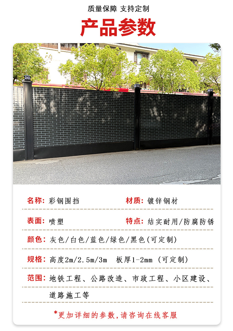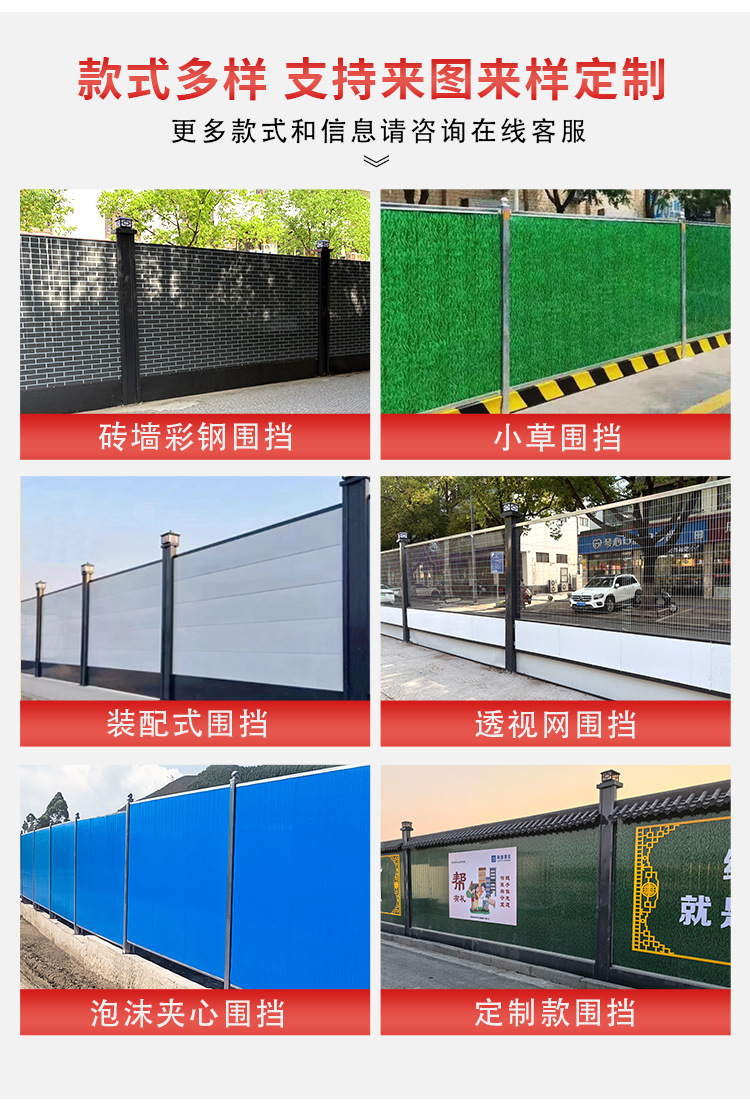 벽돌 벽 울타리, 도로 건설 격리, 철판 타일 건설 현장 임시 안전 격리 가드레일, 컬러 강철 울타리