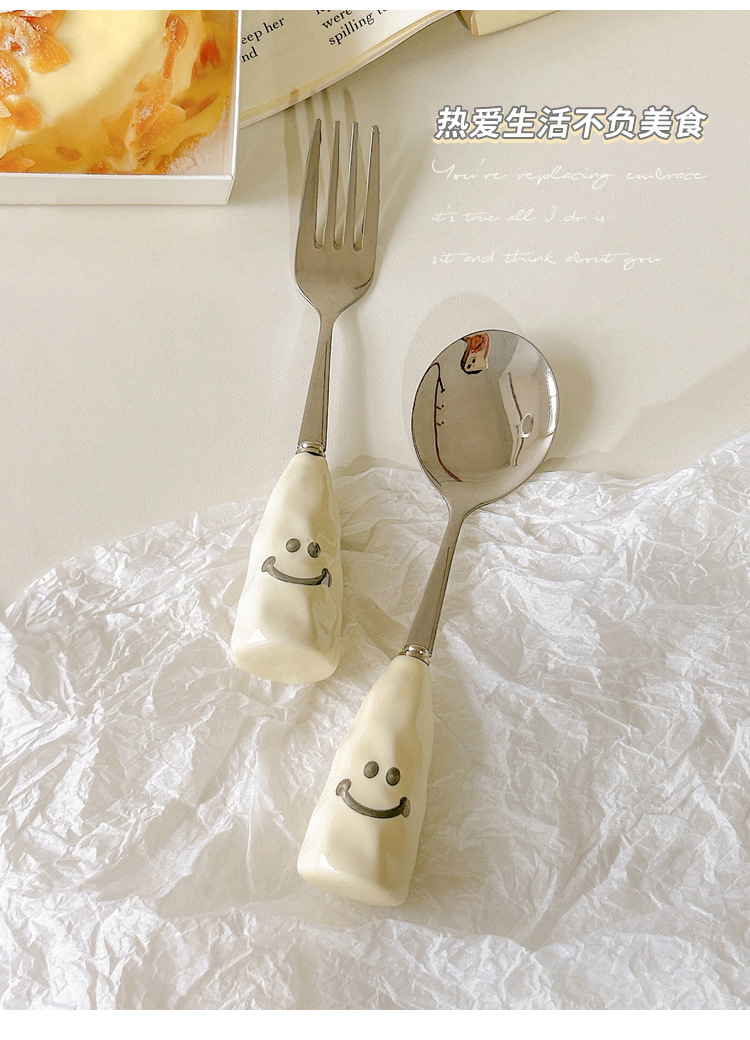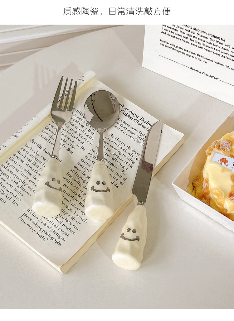 고급스러운 스푼, 포크, 식기, 서양식 디저트, 304 스테인리스 스틸 나이프와 포크 세트, 1인용 3종 세트, 귀여운