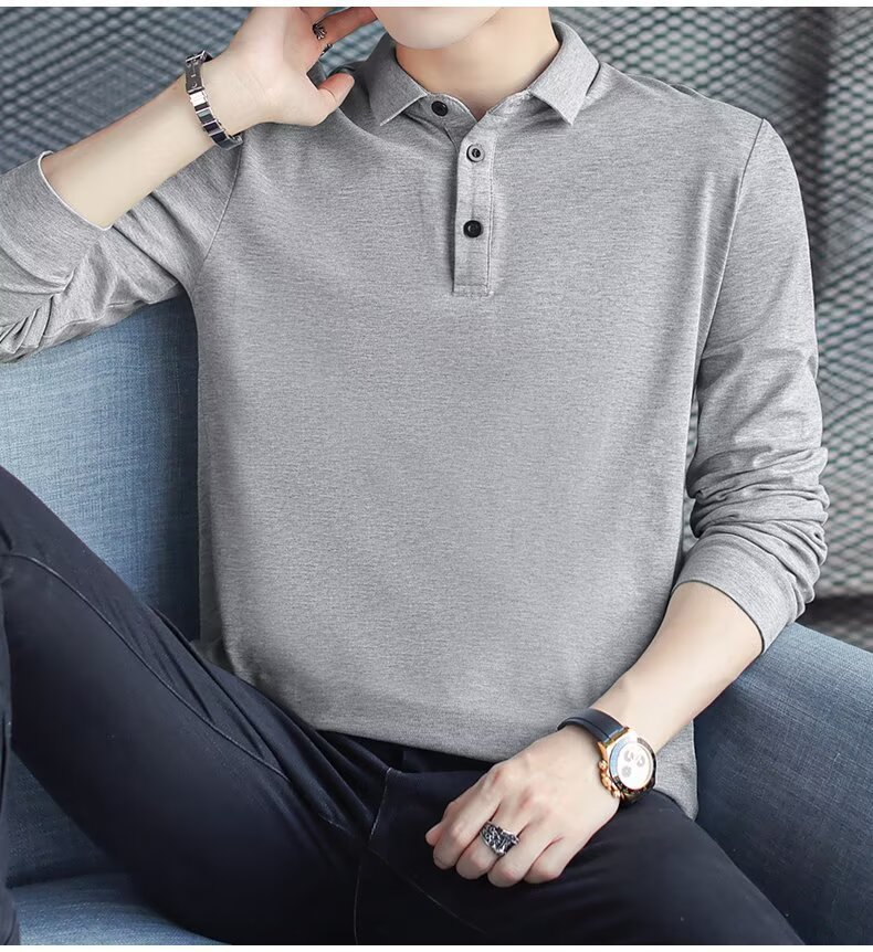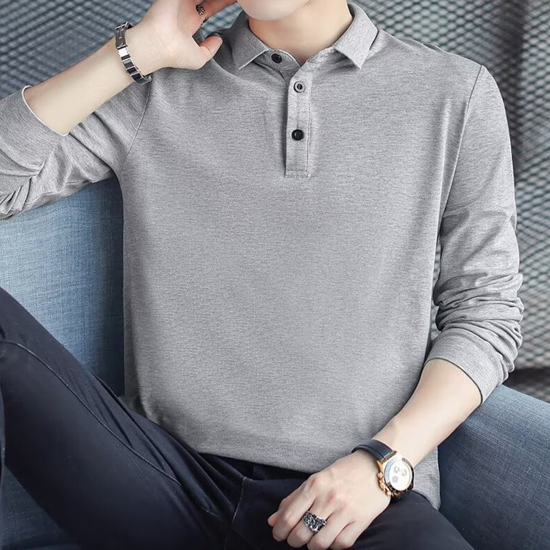 패셔너블한 봄, 가을 신상 긴팔 티셔츠 남성 한국 스타일 트렌디 폴로 셔츠 라펠 핸섬 보텀 셔츠 가을 상의