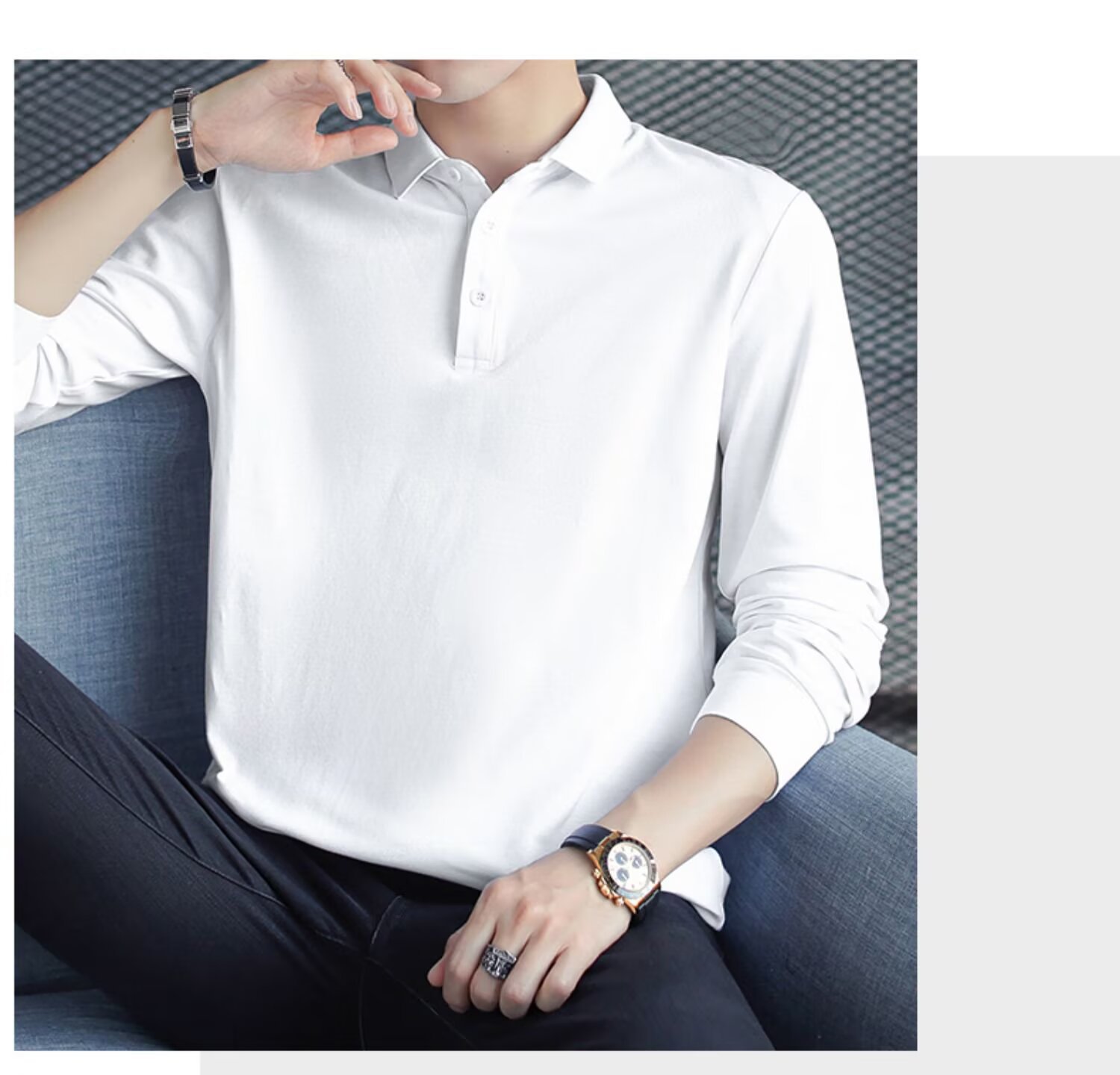 패셔너블한 봄, 가을 신상 긴팔 티셔츠 남성 한국 스타일 트렌디 폴로 셔츠 라펠 핸섬 보텀 셔츠 가을 상의스토어 가기