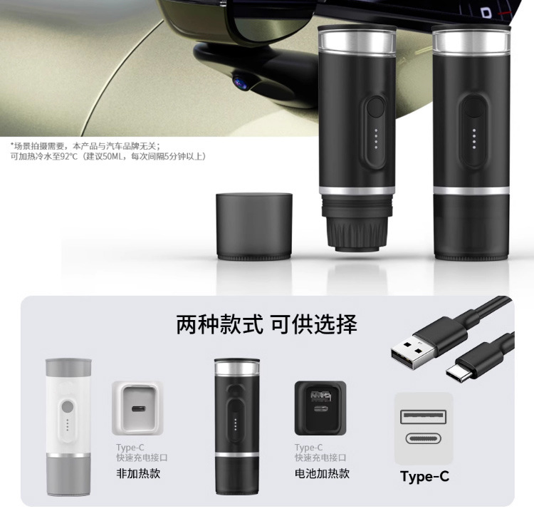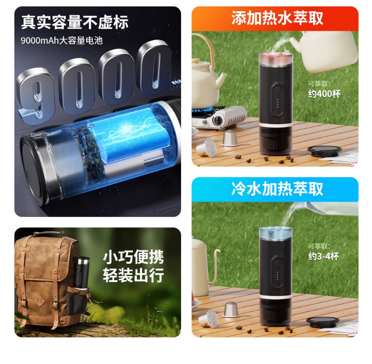 휴대용 커피 머신 에스프레소 무선 가열 캡슐 충전 휴대용 야외 여행 자동차 커피 머신