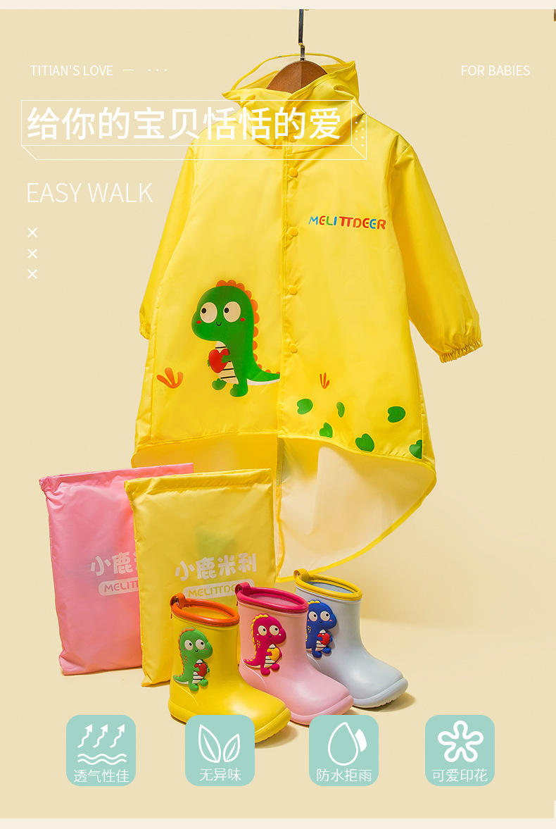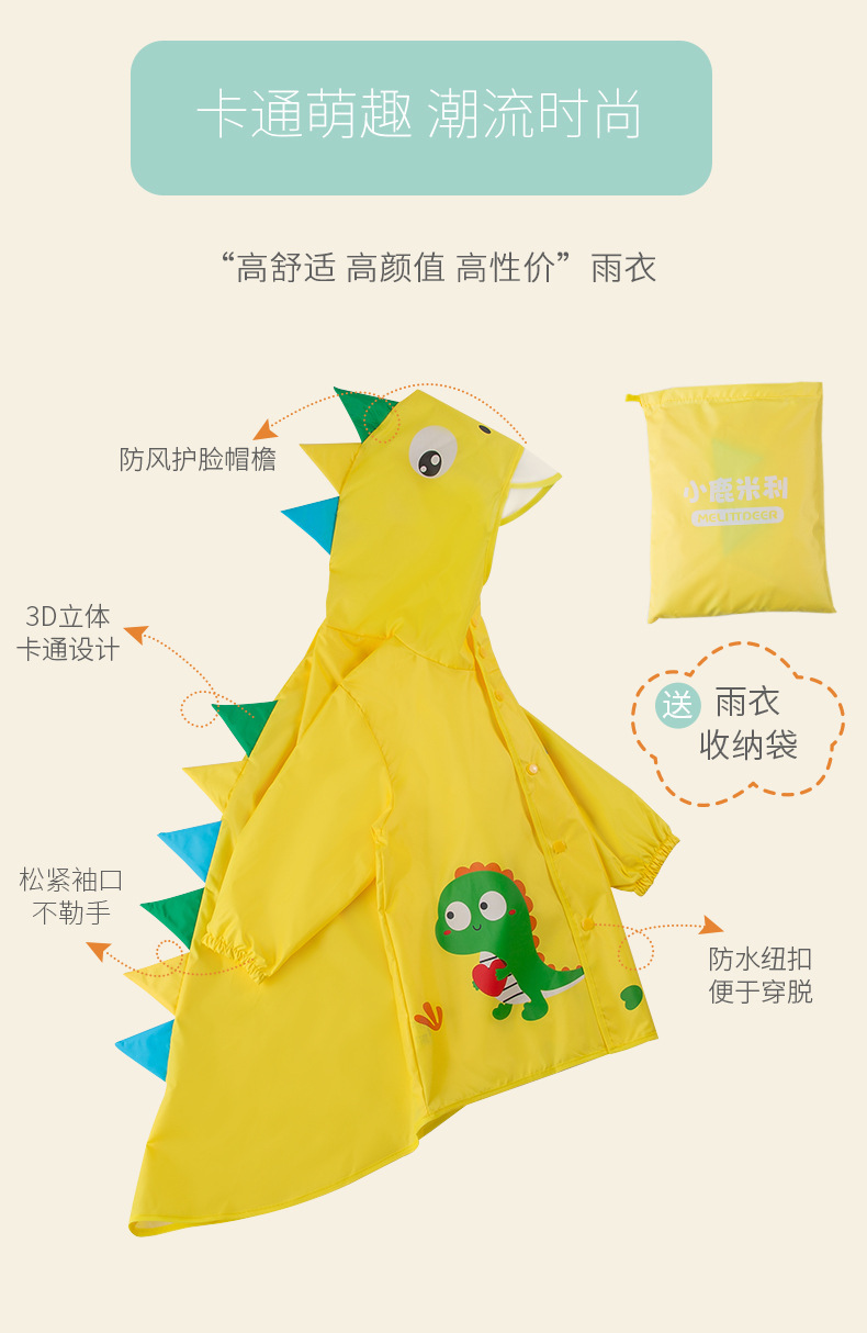 어린이용 비옷 폴리에스터 천 가볍고 얇은 학교용 남아 여아 방수 피부 친화적 부드러운 만화 입체 방수복