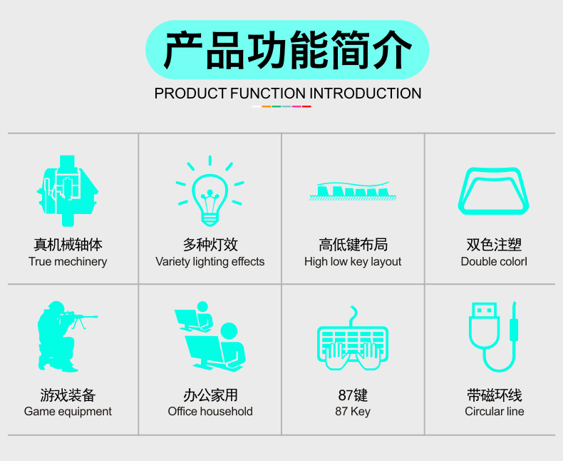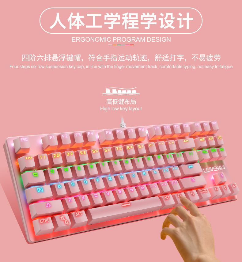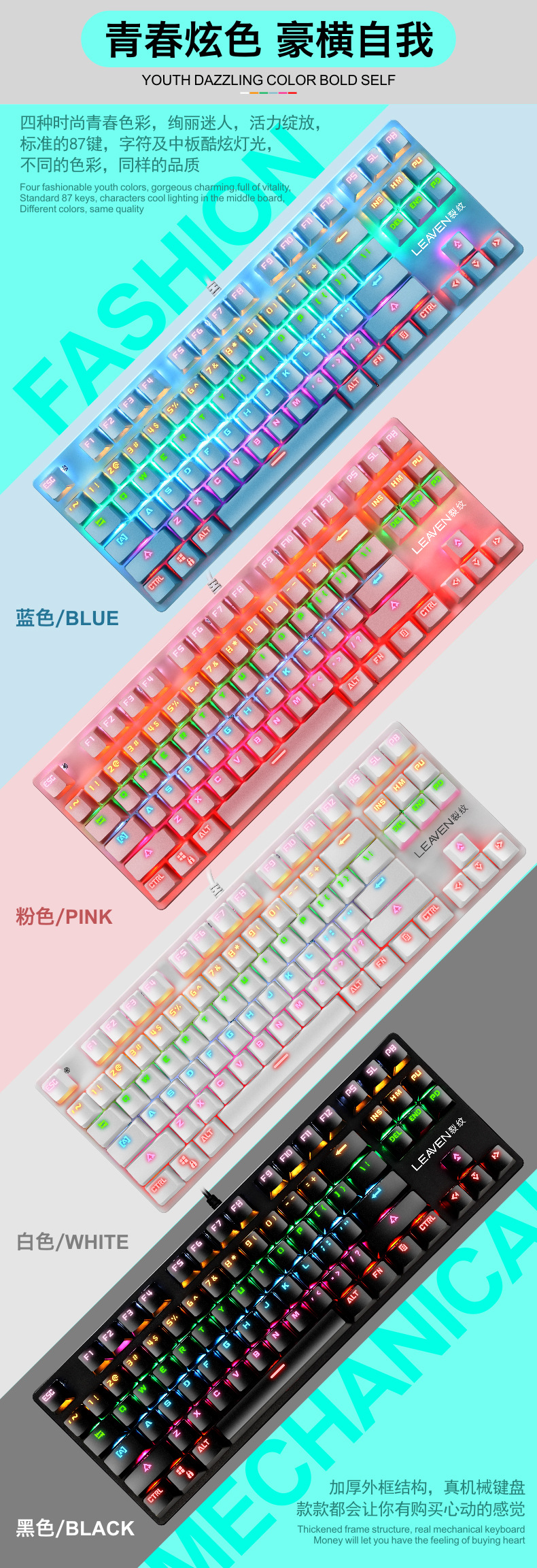 Crack K550 펑크 기계식 키보드 USB 유선 녹색 축 87 키 게임 e-스포츠 사무실 컴퓨터 기계식 키보드