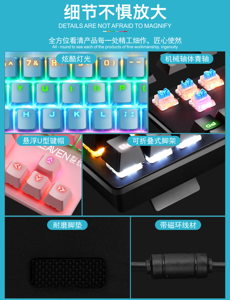 Crack K550 펑크 기계식 키보드 USB 유선 녹색 축 87 키 게임 e-스포츠 사무실 컴퓨터 기계식 키보드스토어 가기