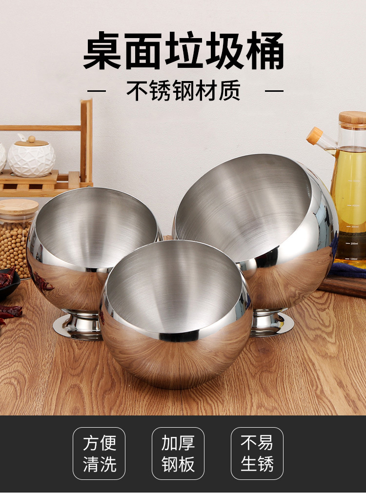 VLEN 스테인레스 스틸 데스크탑 쓰레기통 사무실 책상 껍질 보관 상자 미니 작은 보관함 거실 데스크탑스토어 가기