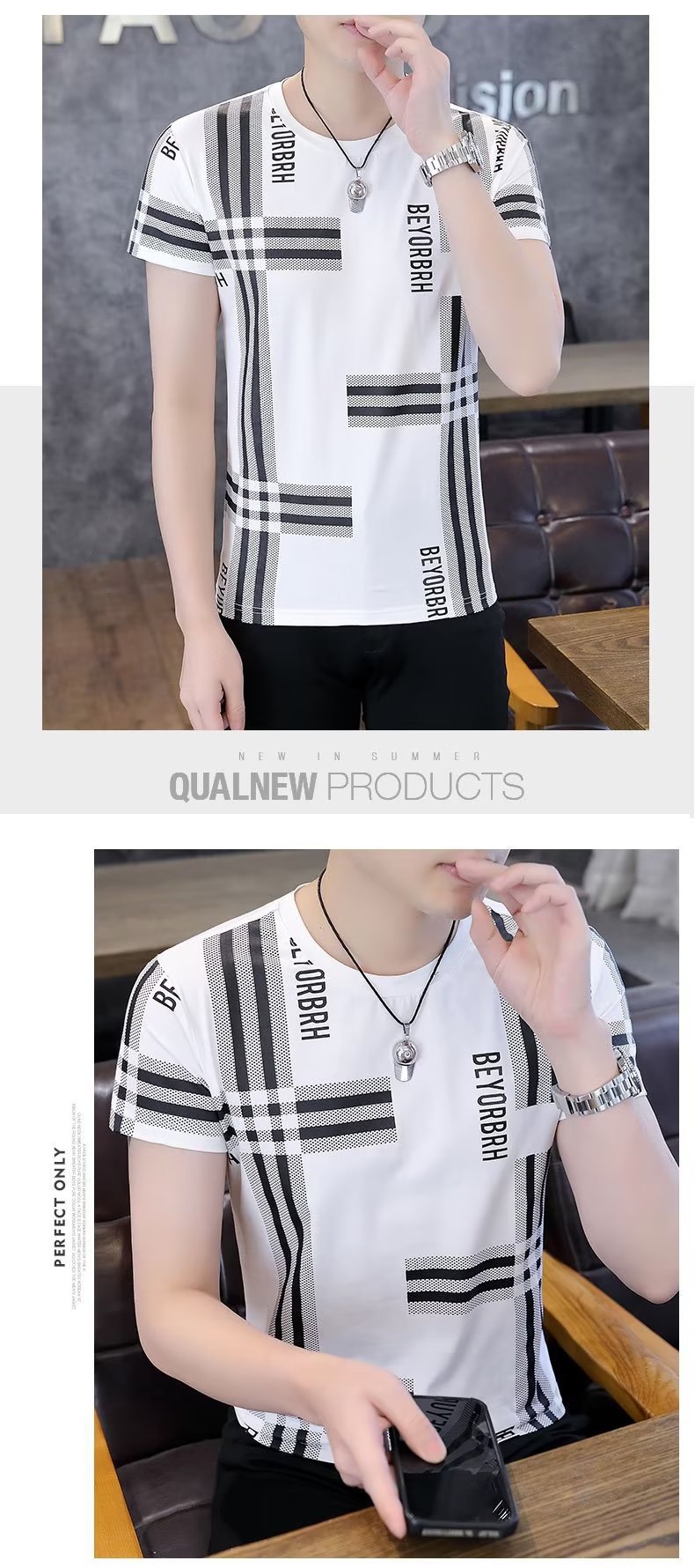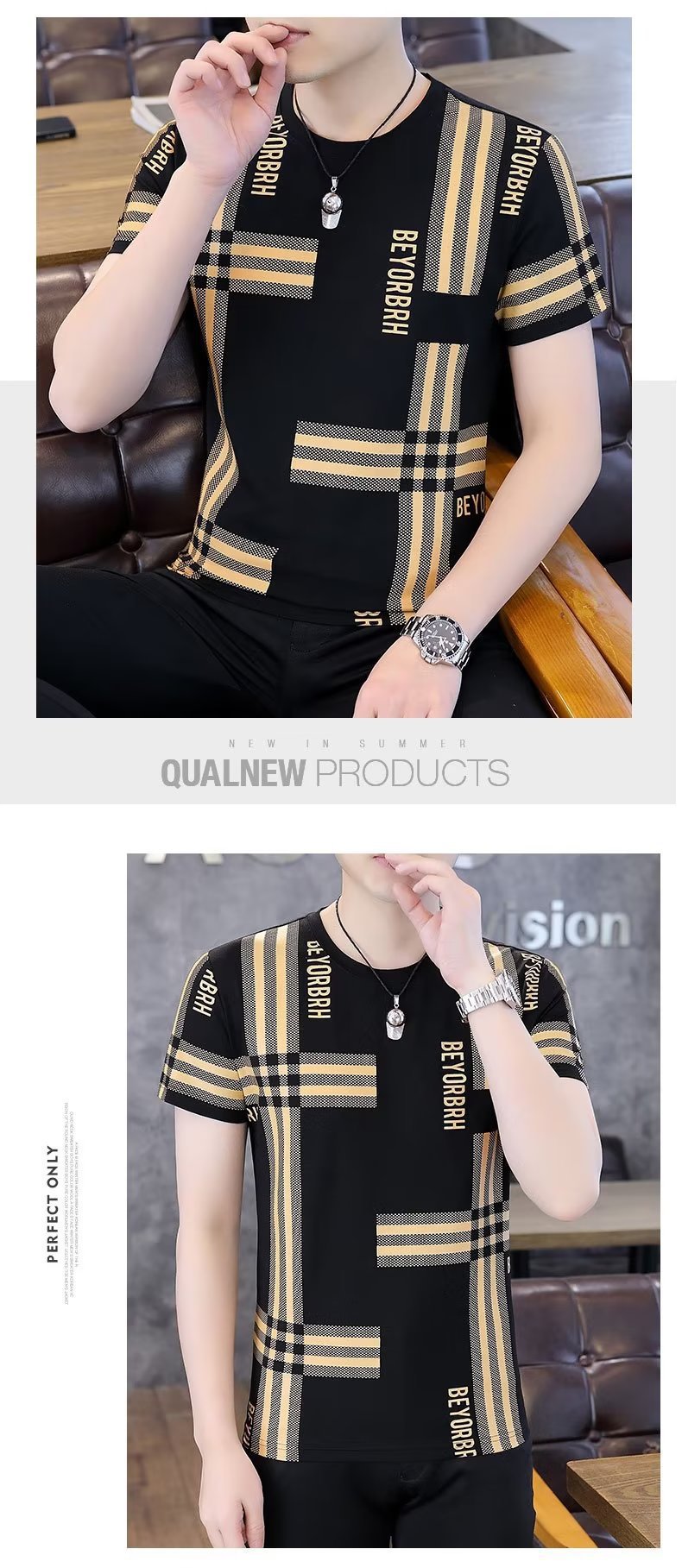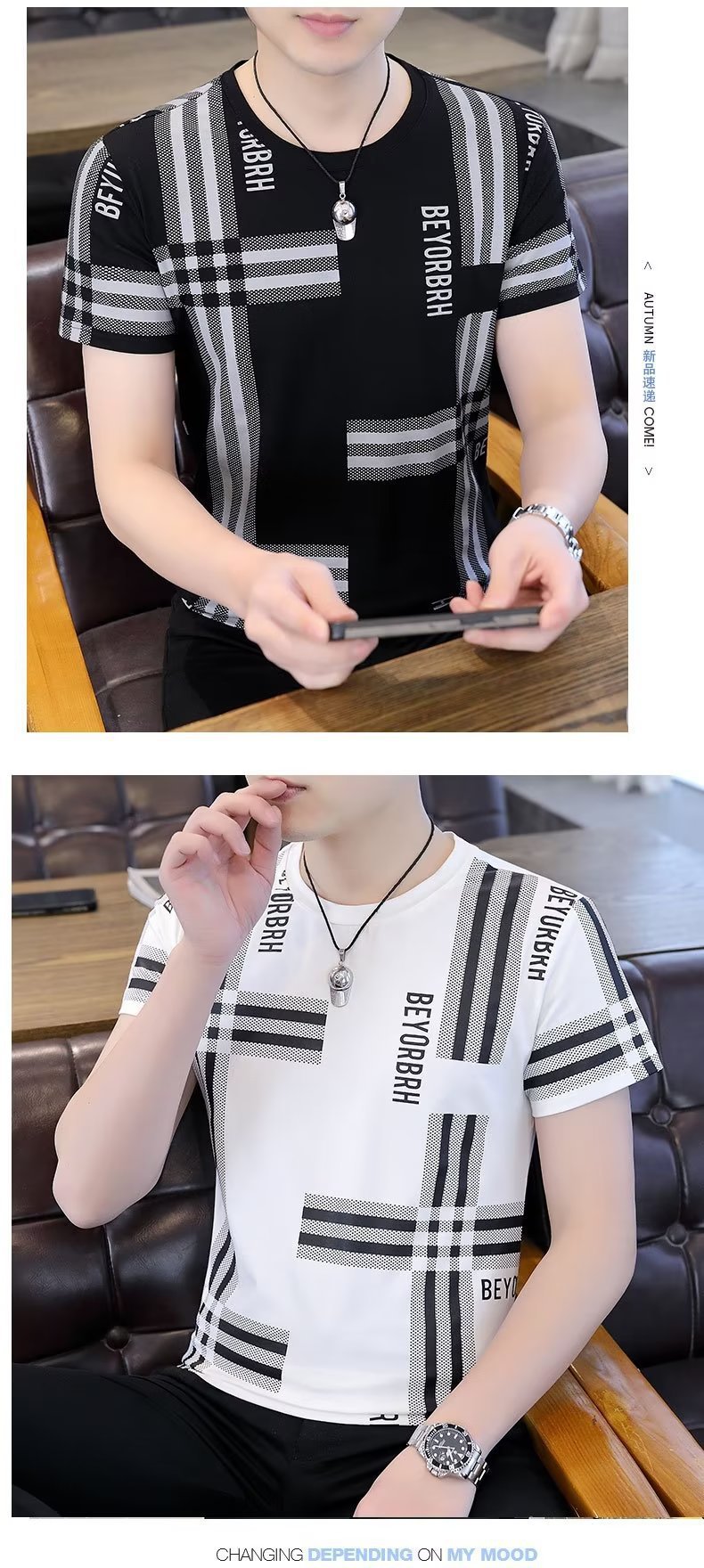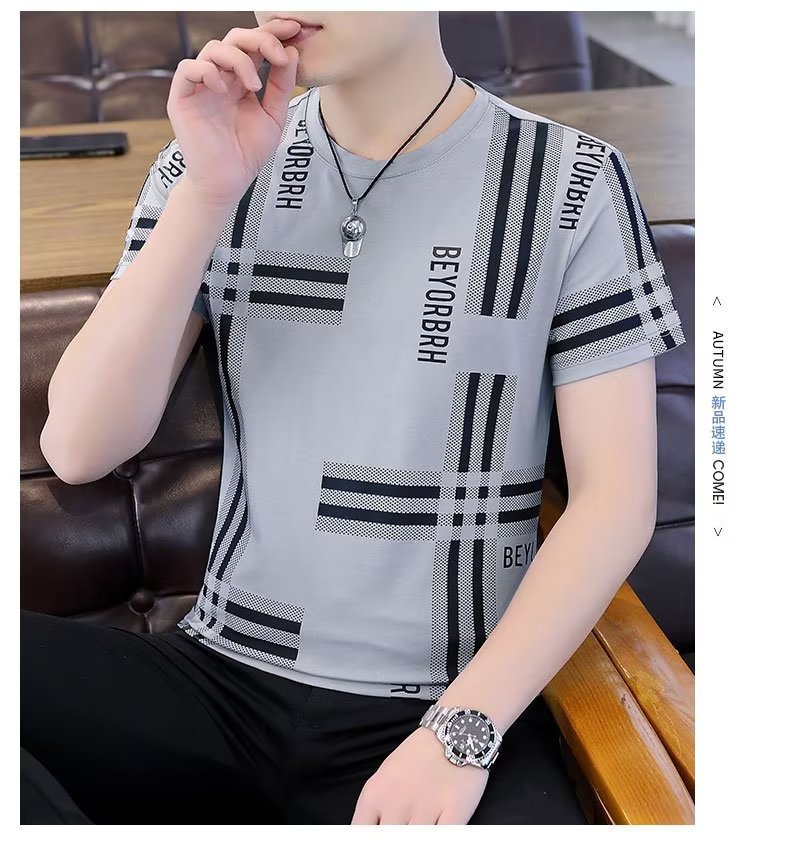 남성 여름 다목적 캐주얼 아이스 실크 반팔 티셔츠 쿨 라운드 넥 남성 여름 트렌디 티셔츠 아이스 티셔츠스토어 가기