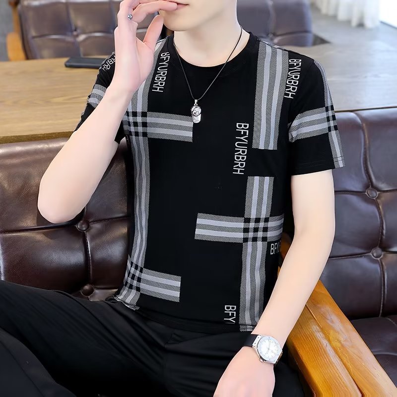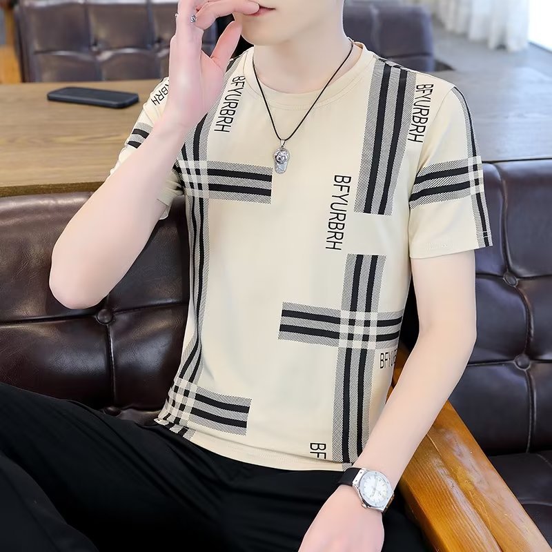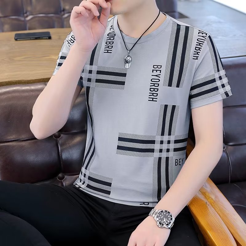 남성 여름 다목적 캐주얼 아이스 실크 반팔 티셔츠 쿨 라운드 넥 남성 여름 트렌디 티셔츠 아이스 티셔츠