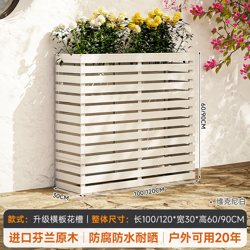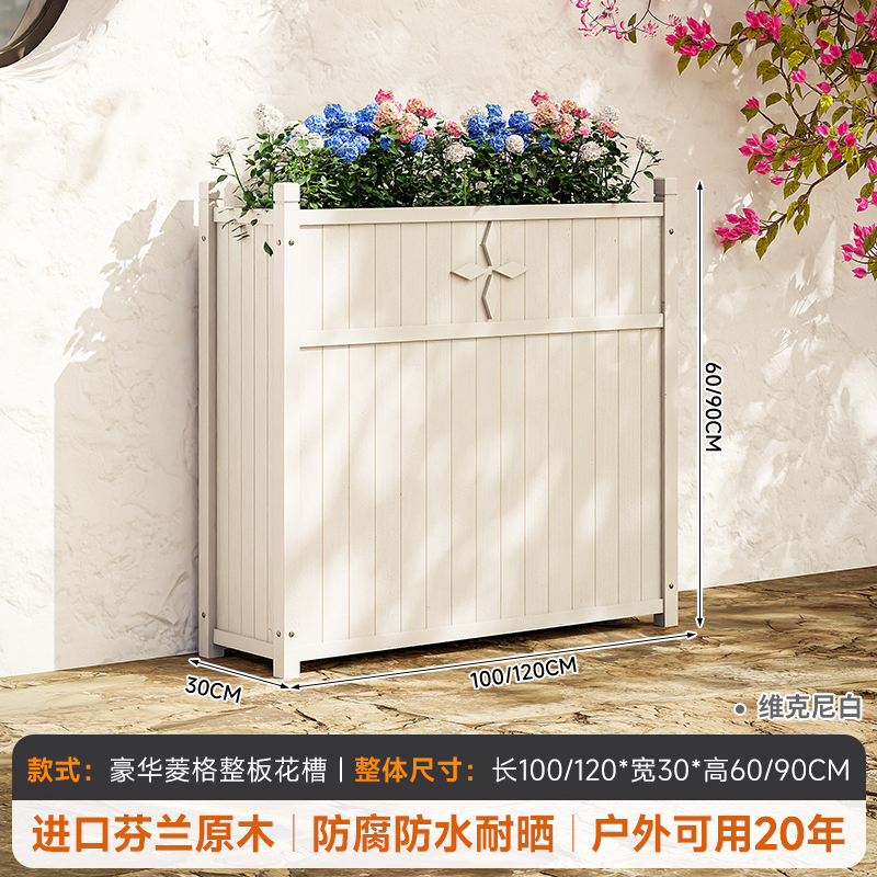 ✅ 방부 처리된 목재 야외 화분 울타리 직사각형 꽃 스탠드 울타리 발코니 긴 꽃 상자 안뜰 파티션 울타리 꽃