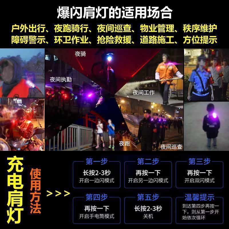 LED 경고 어깨 램프 플래시 다기능 충전식 빨간색과 파란색 플래시 근무 안전 재산 위생 보안 신호