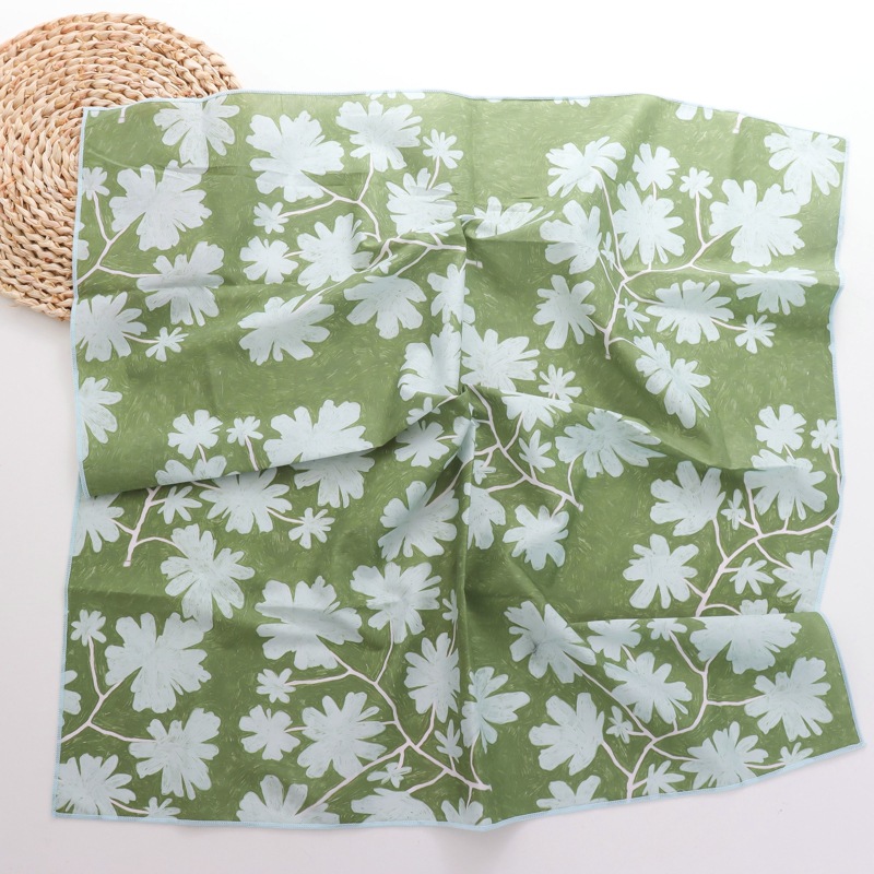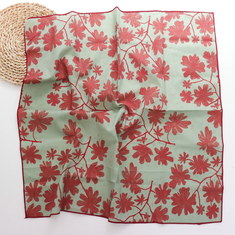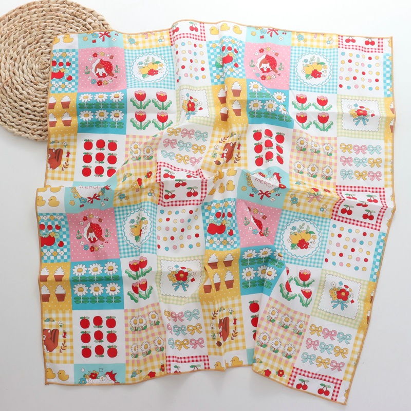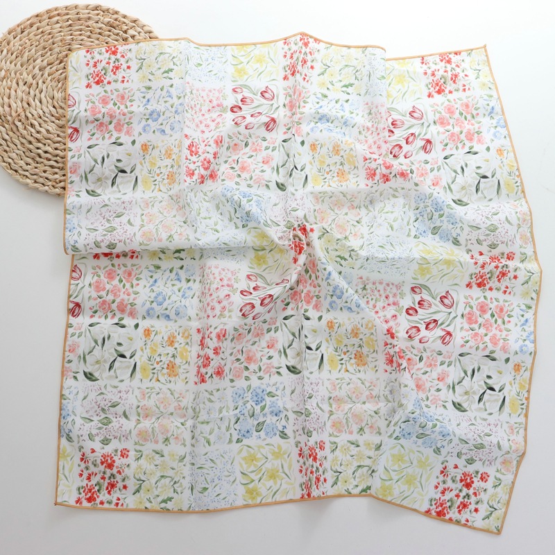 2025 새로운 100% 면 작은 꽃 스카프 패치 워크 격자 무늬 면밭 꽃 귀여운 60*60 면 스퀘어 스카프