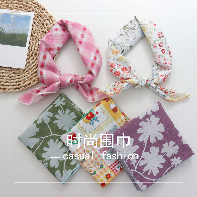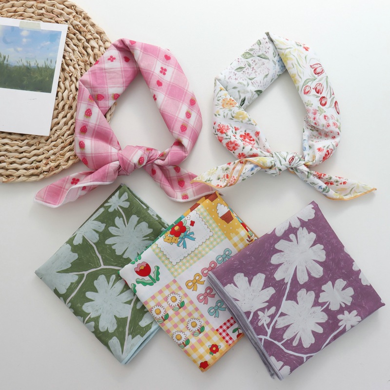2025 새로운 100% 면 작은 꽃 스카프 패치 워크 격자 무늬 면밭 꽃 귀여운 60*60 면 스퀘어 스카프스토어 가기