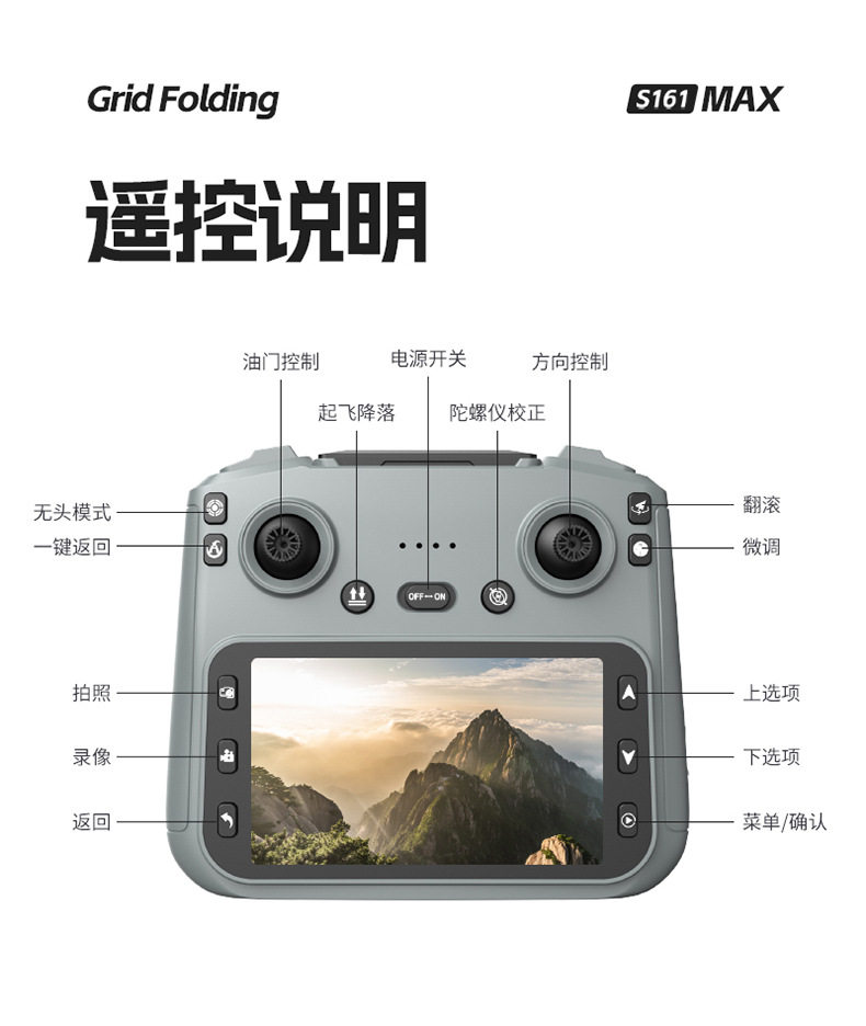 • Gray-720P 브러시리스 - 4.5inch 스크린 - 7.4V [광학 흐름 + 전자 제어 듀얼 카메라]