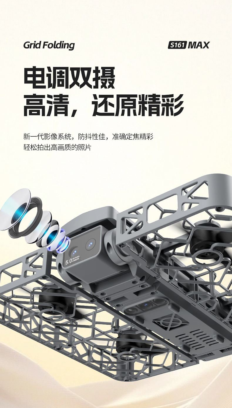 국경 간 신제품 S161 스크린 제어 기능이 있는 브러시리스 비행 포켓 카메라 720P HD 드론 완전 밀폐형 항공기
