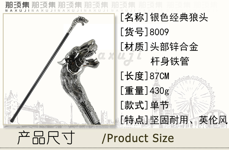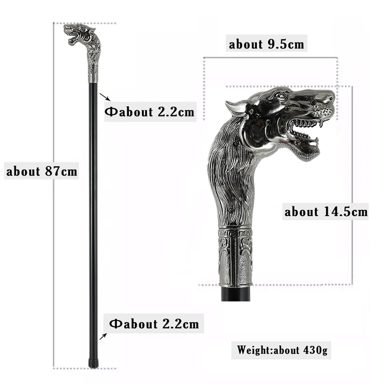 은색 금속 늑대 머리 영국 신사 지팡이 문명 지팡이 공연 소품 할로윈 코스프레 지팡이스토어 가기