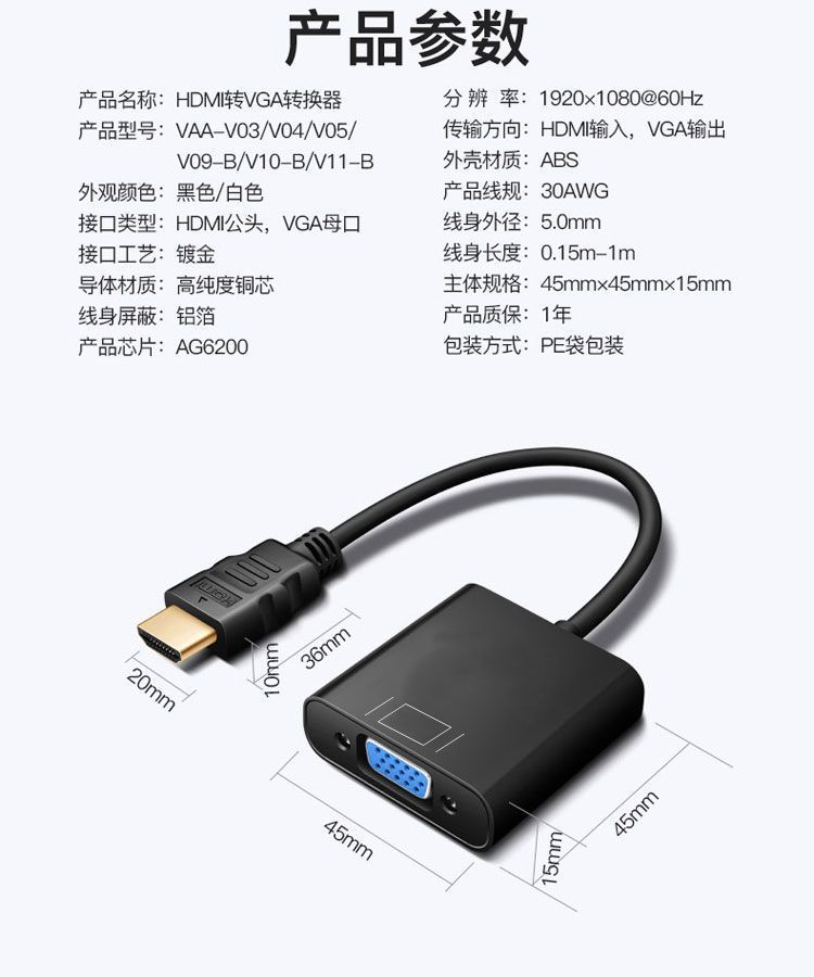 HDMI-VGA 변환기 HD 노트북 프로젝터 변환기 셋톱 박스 오디오 인터페이스 연결