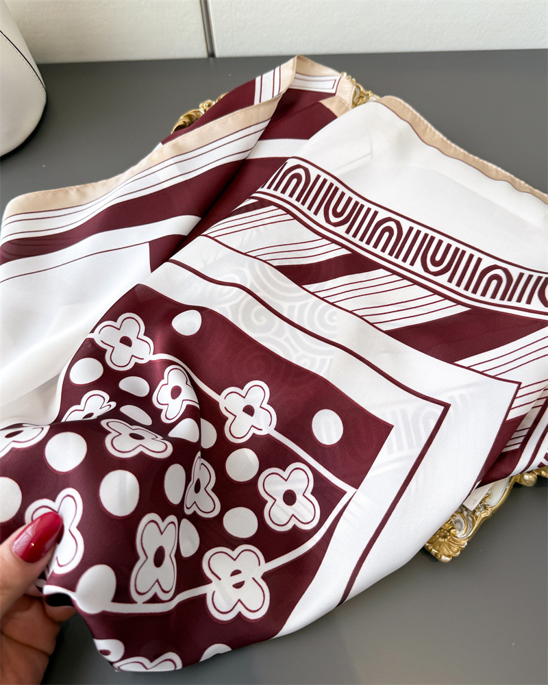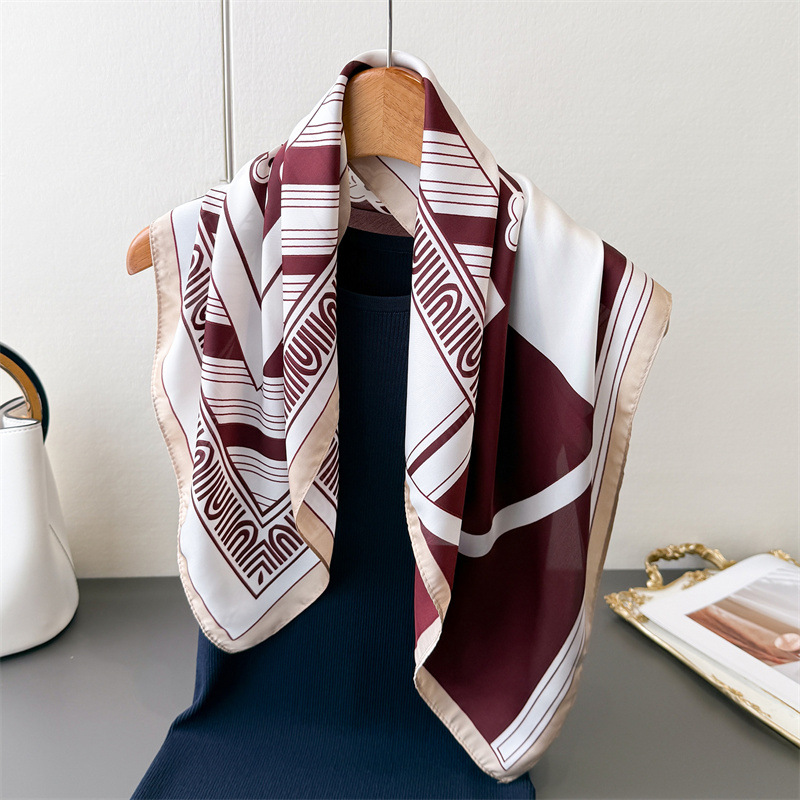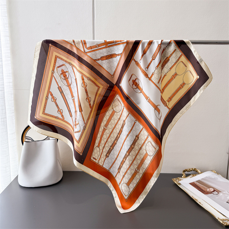 레트로 스타일 프린트 시뮬레이션 실크 스카프, 고급 숄, 다용도 넥 스카프, 여성용 스카프