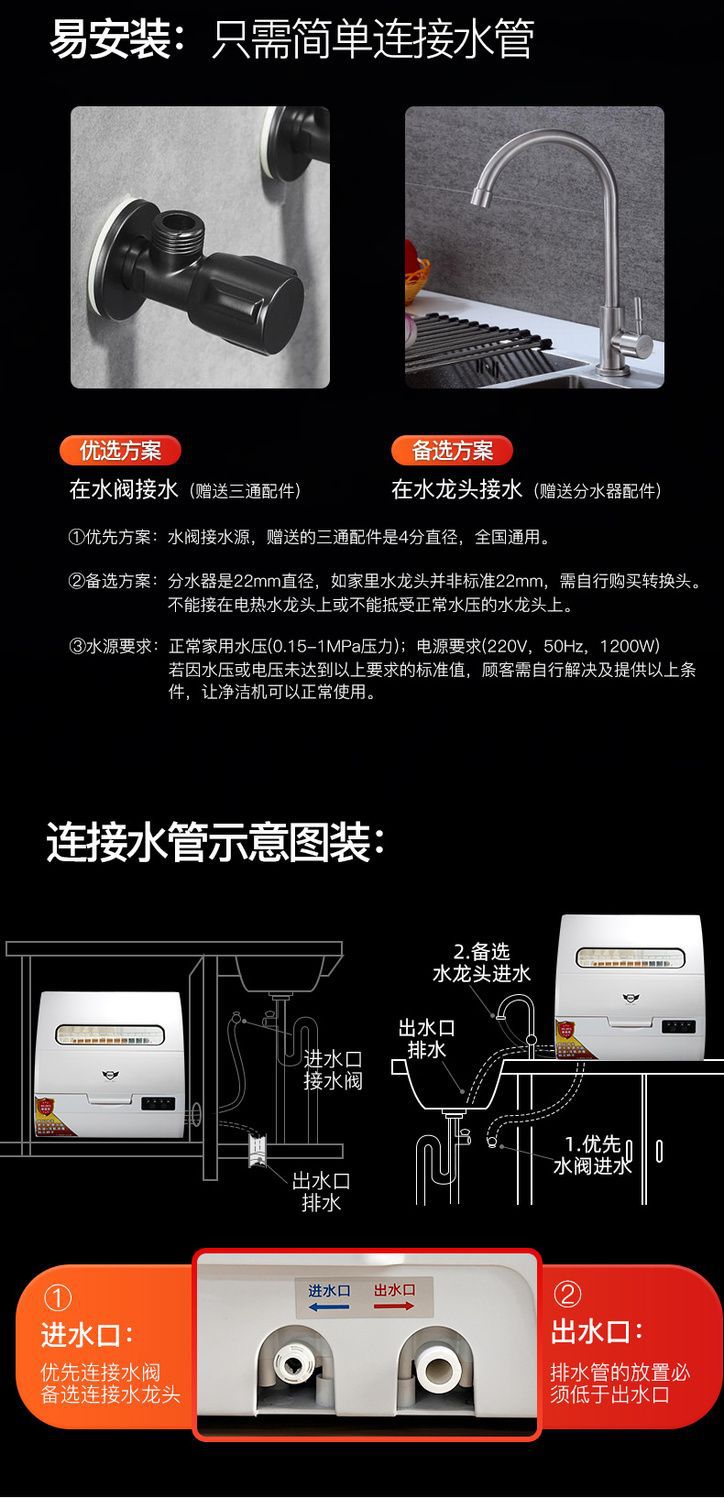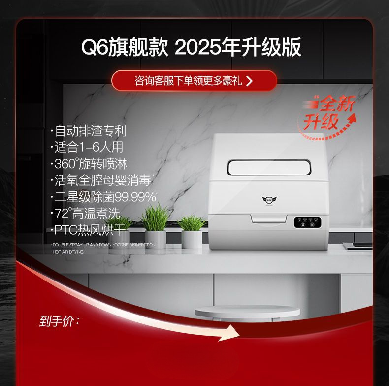 2025 식기세척기 6인용 완전 자동 스마트 홈 소형 물 절약 소독 열풍 건조 Q6스토어 가기