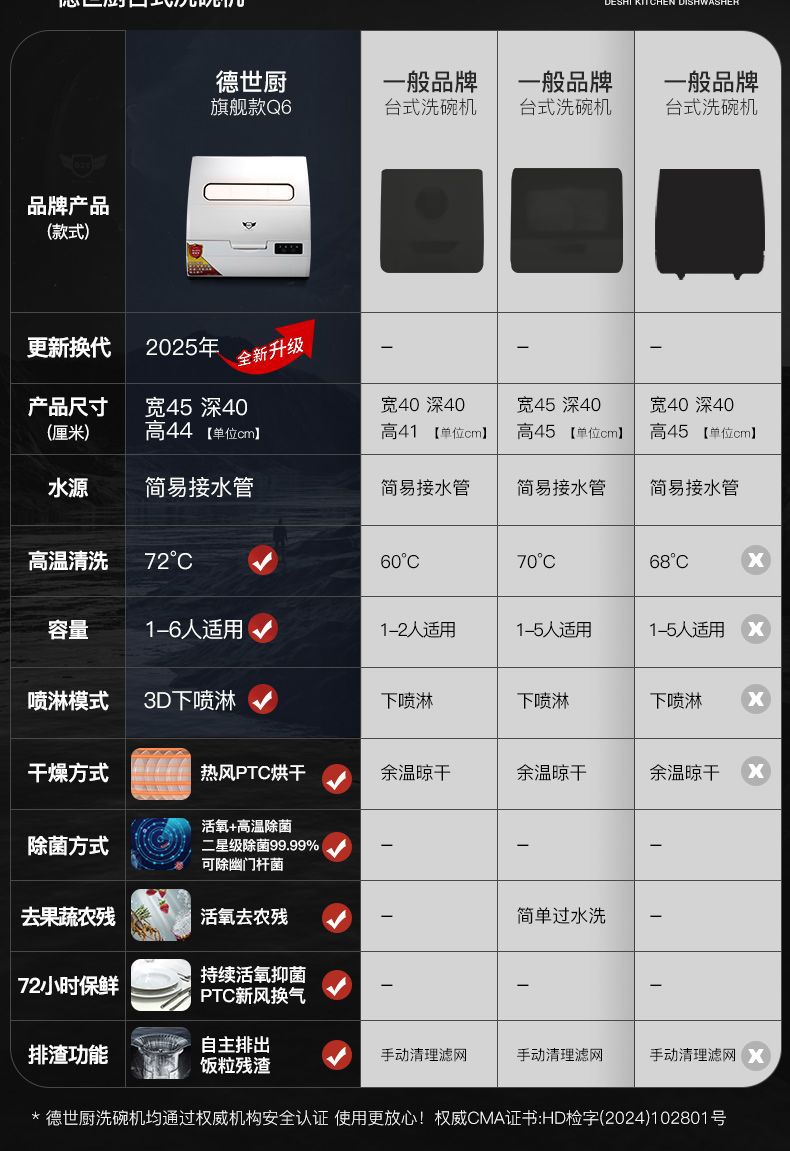 2025 식기세척기 6인용 완전 자동 스마트 홈 소형 물 절약 소독 열풍 건조 Q6