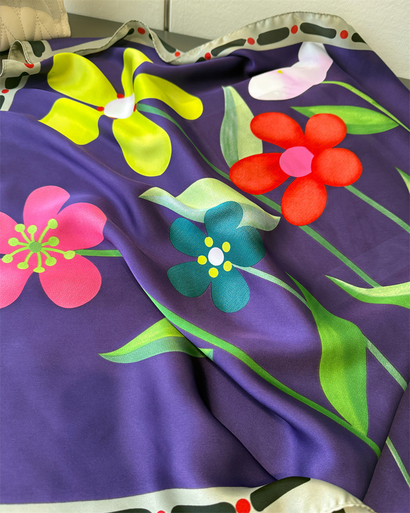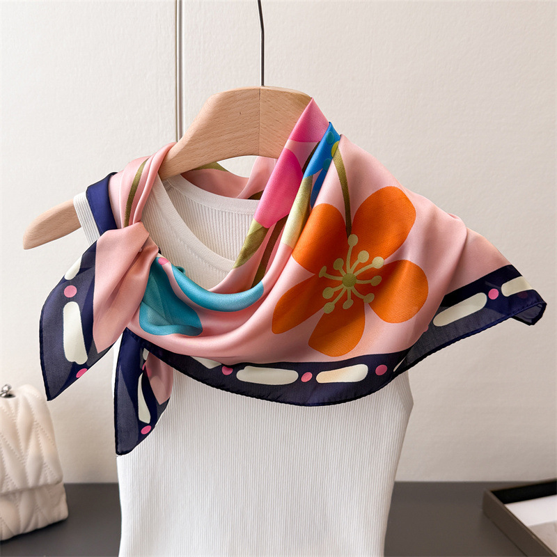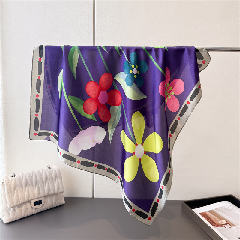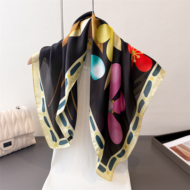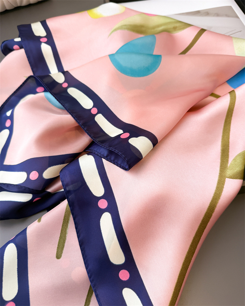 화려한 컬러풀한 프린트의 모조 실크 스카프, 고급 숄, 다용도 넥 스카프, 여성용 스카프