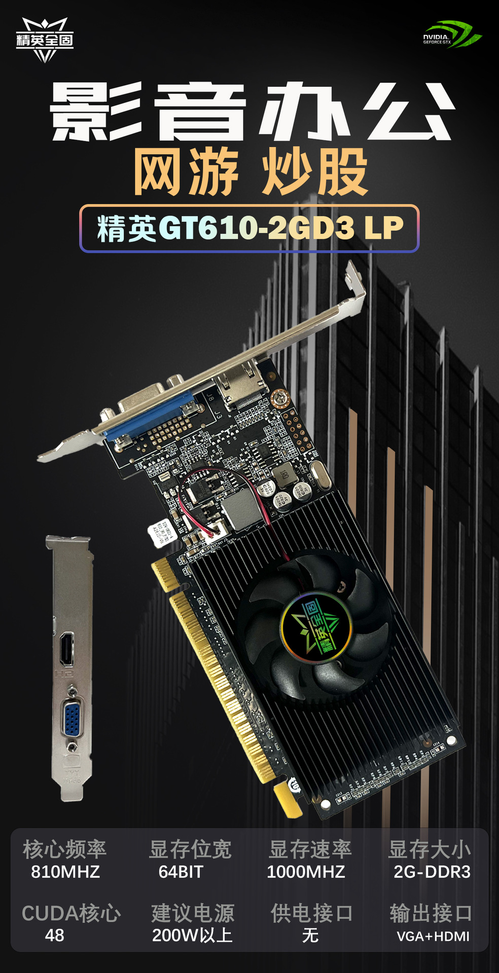 엘리트 풀 솔리드 GT610 2G DDR3 미니 산업용 제어 올인원 소형 섀시 그래픽 카드스토어 가기