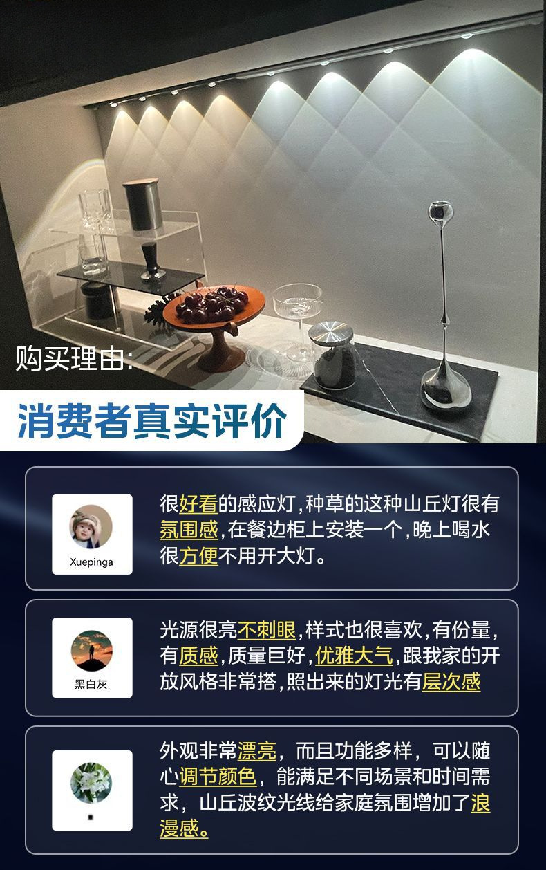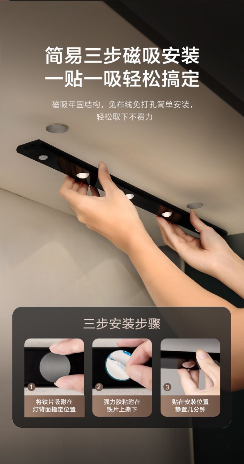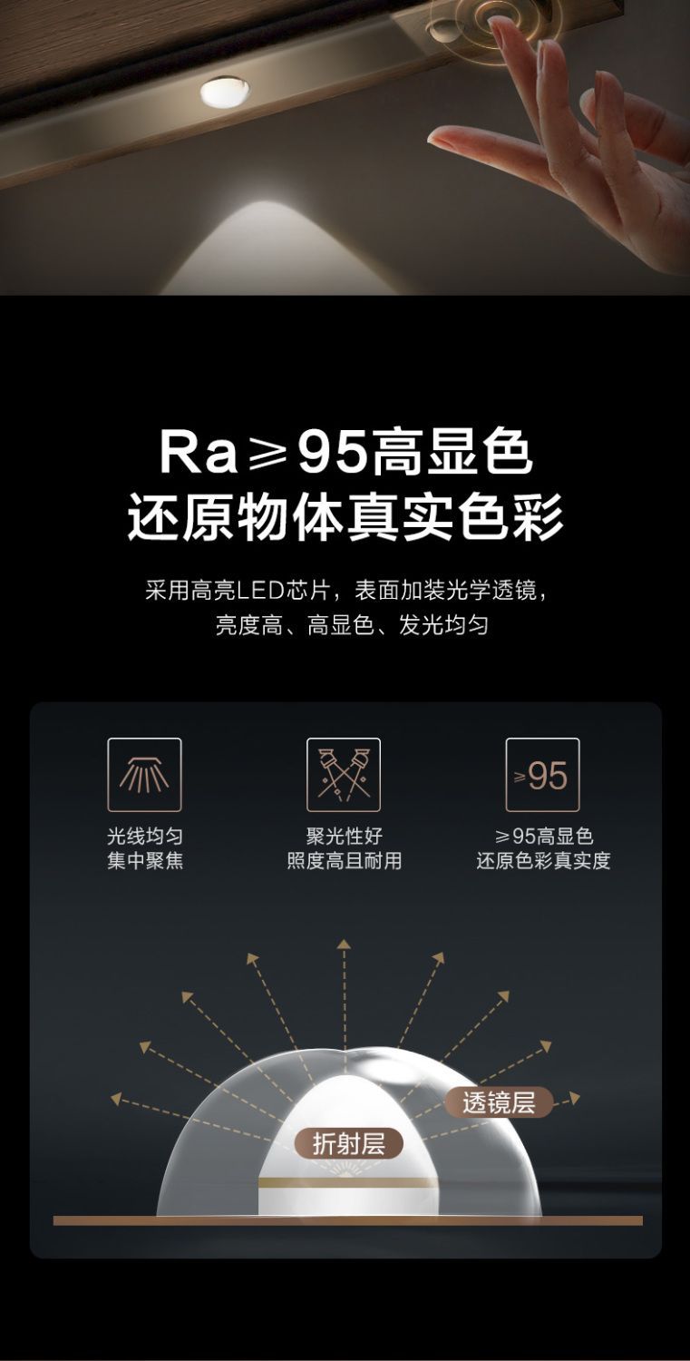 LED 인체 유도 램프 자기 흡입 벽 캐비닛 유도 램프 배선이 필요없는 빛 럭셔리 힐 리플 옷장 라이트 스트립