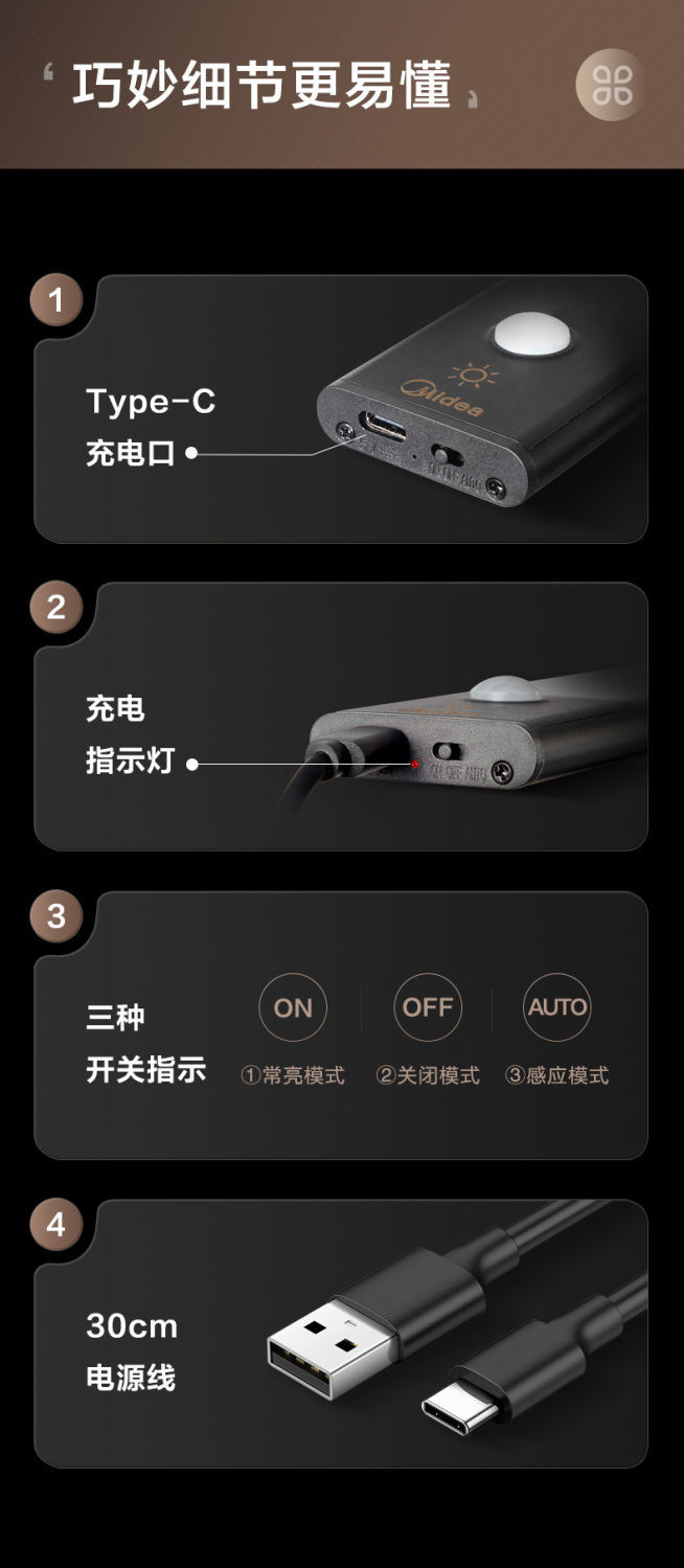 • 60CM丨힐 조명 효과 분위기 조명丨지능형 센서