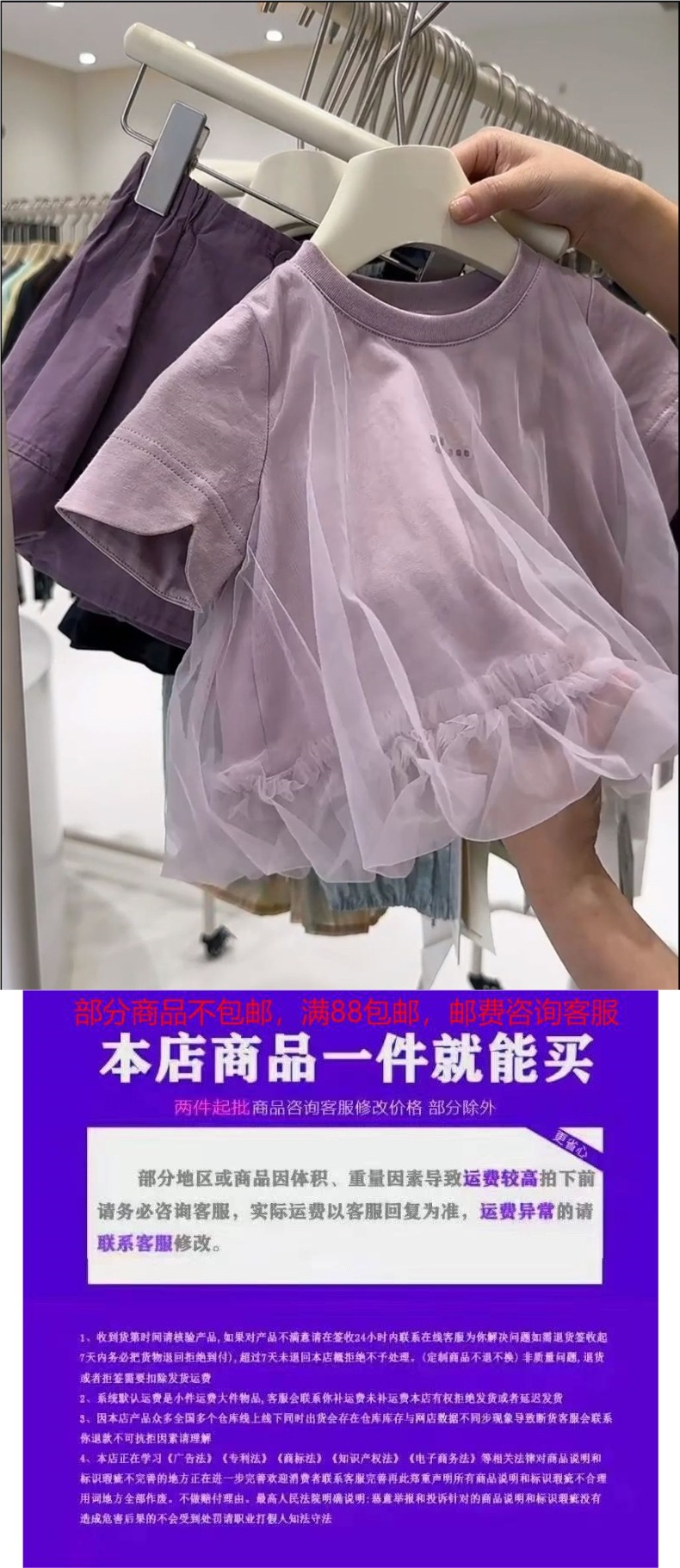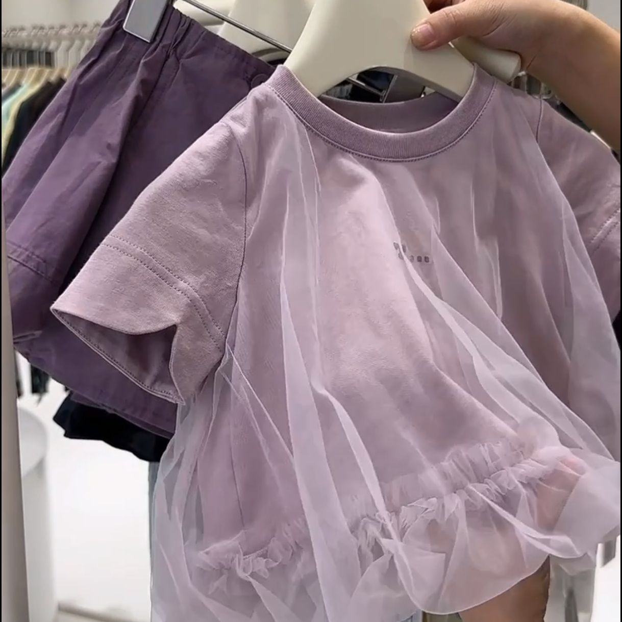 한국 스타일 여아 정장 24 Xiajia 스타일 초소형 및 중형 어린이 슈퍼 요정 쉬폰 티셔츠 어린이 단색 스커트 투피스 세트스토어 가기