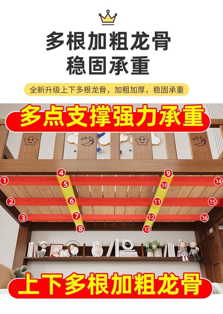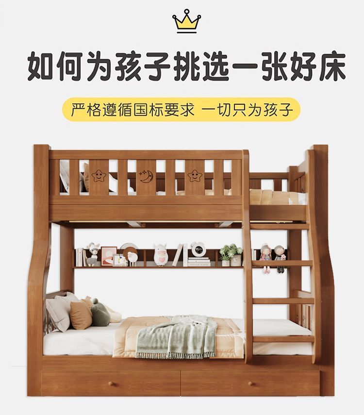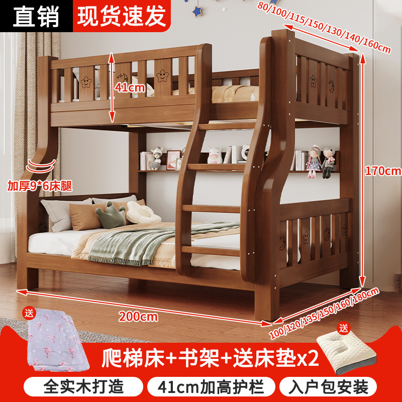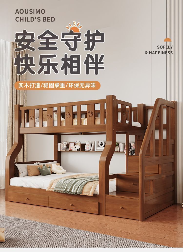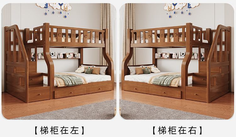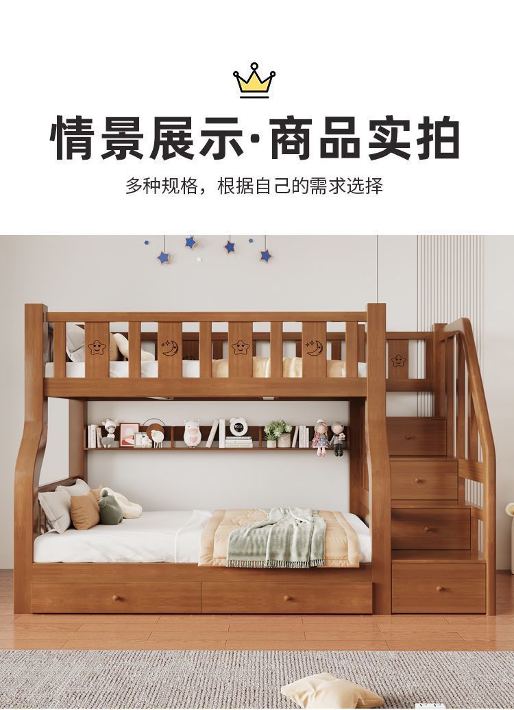 원목 이층침대, 이층침대, 다기능 높낮이 이층침대, 소형 아파트 어린이 침대, 2층