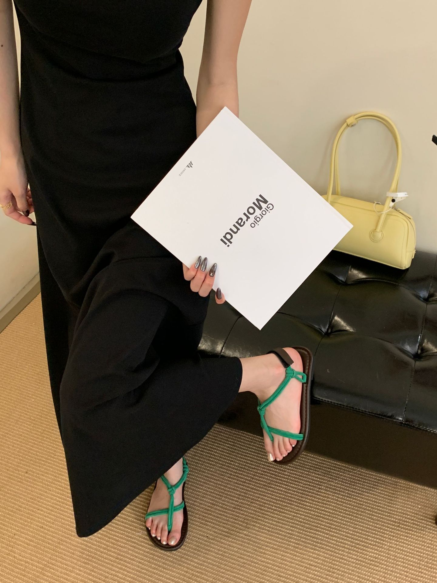 여성용 요정 스타일 패션 샌들, 2025년 여름 인기 있는 새로운 플랫 바닥 경량 미끄럼 방지 벨크로 여성 신발