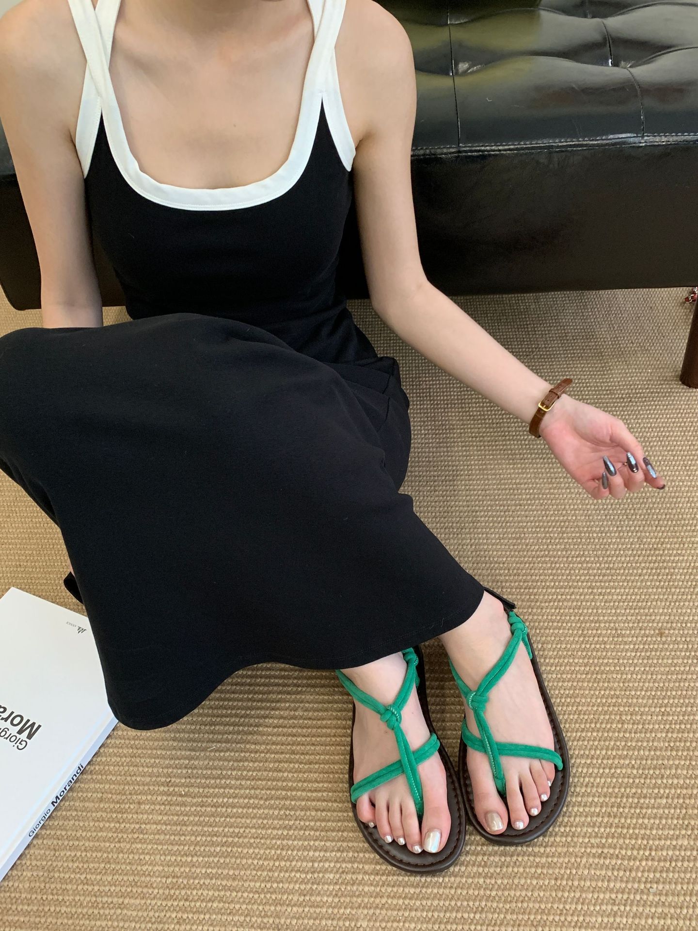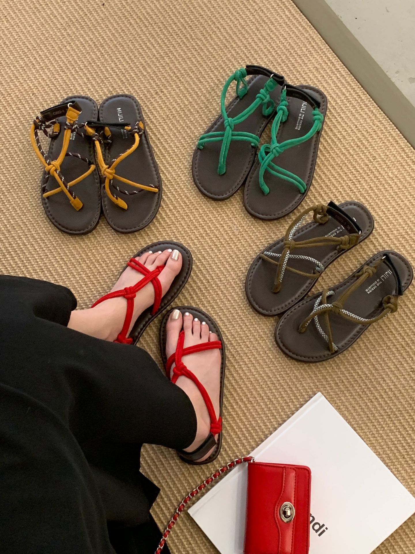 여성용 요정 스타일 패션 샌들, 2025년 여름 인기 있는 새로운 플랫 바닥 경량 미끄럼 방지 벨크로 여성 신발스토어 가기