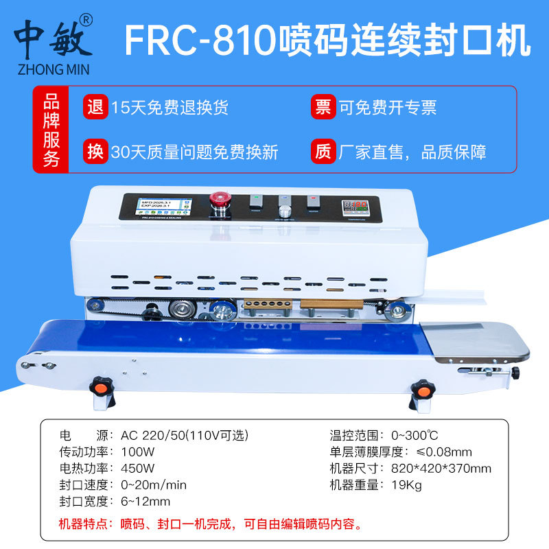 Zhongmin FRC-810 자동 연속 밀봉 기계 차 알루미늄 호일 봉투 포장 기계는 날짜를 인쇄하고 레이저로 코드를 스프레이할 수 있습니다.