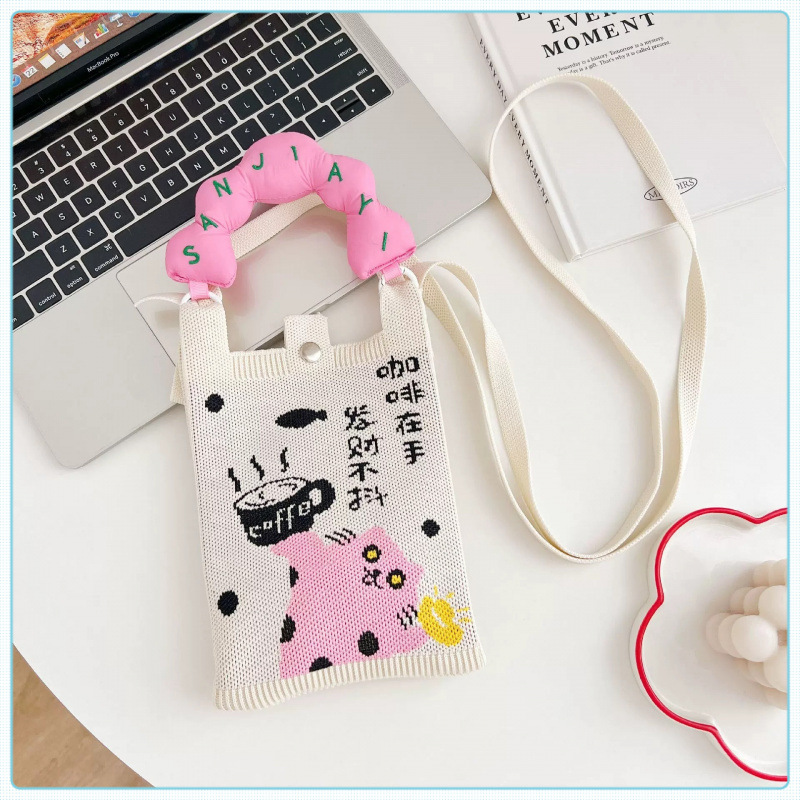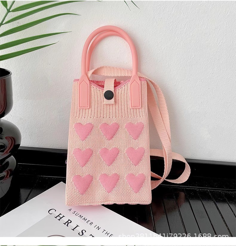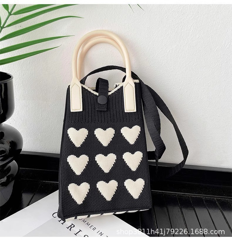 새로운 미니 고급스러운 귀여운 니트 미니 가방, 휴대폰 다용도 휴대용 출퇴근용 크로스백 작은 사각 가방스토어 가기