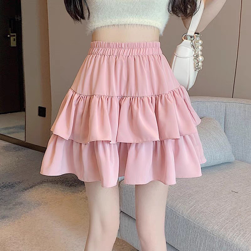 여자 유행 케이크 스커트 2025 여름 새로운 프릴 공주 스타일 A 라인 스커트 다목적 퍼프 스커트