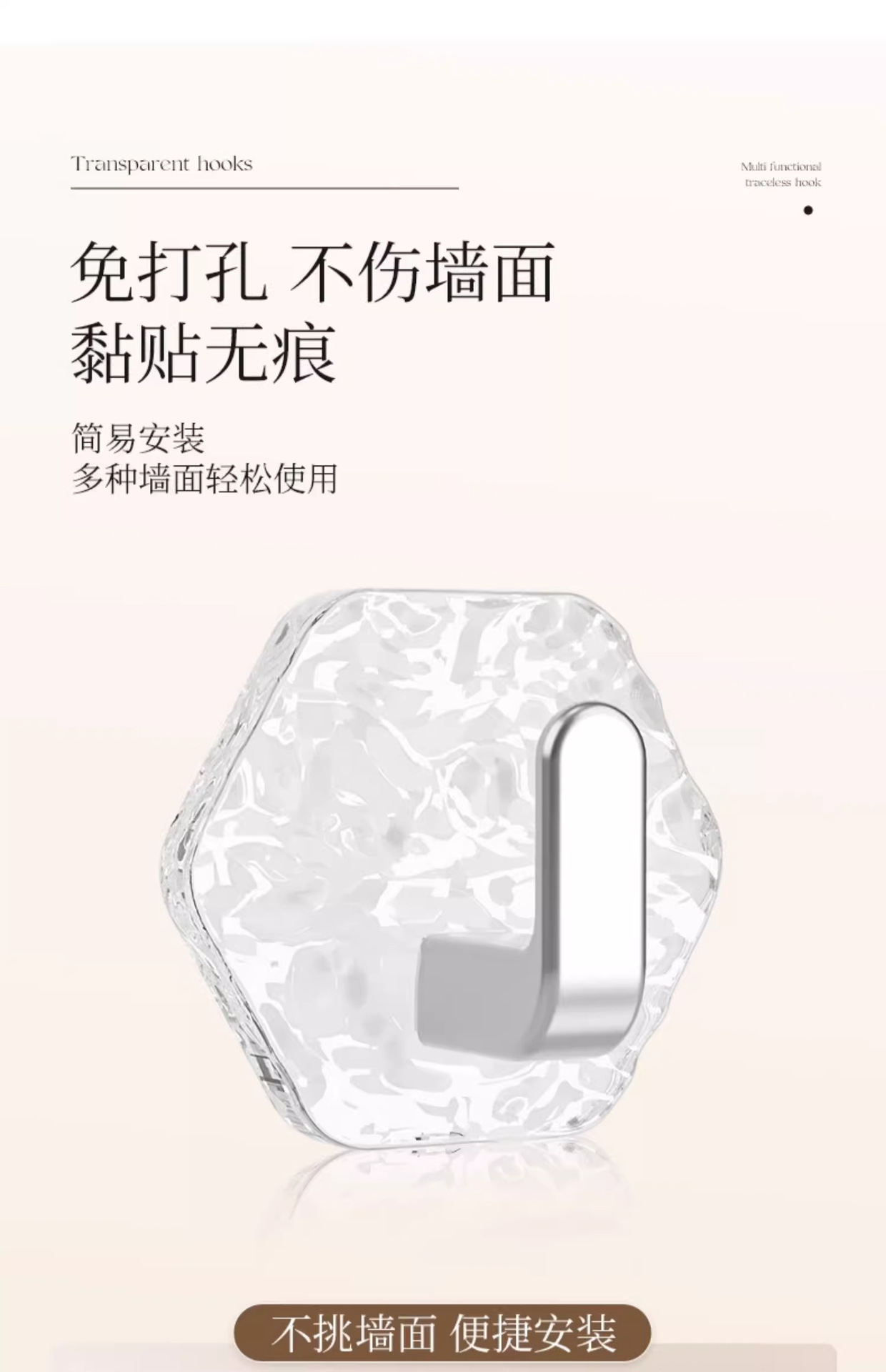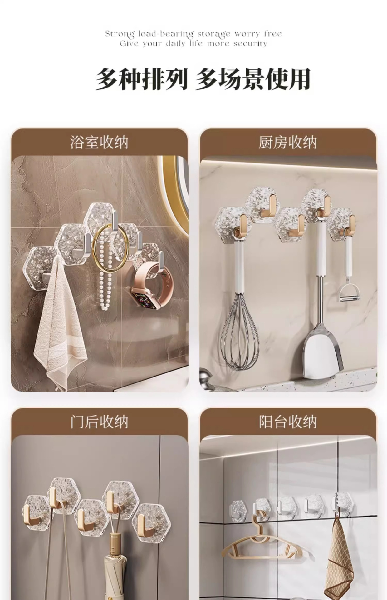 욕실 문 뒤 벽에 구멍을 뚫을 필요 없이 아크릴 후크 주방 육각형 강력한 내하중 흔적 없는 접착 후크