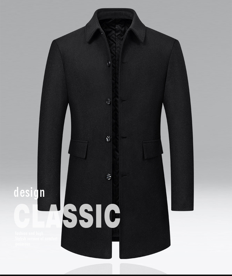 2025 가을 겨울 신작 중년 남성 코트 모직 코트 라펠 모직 코트 캐주얼 남성 중간 길이