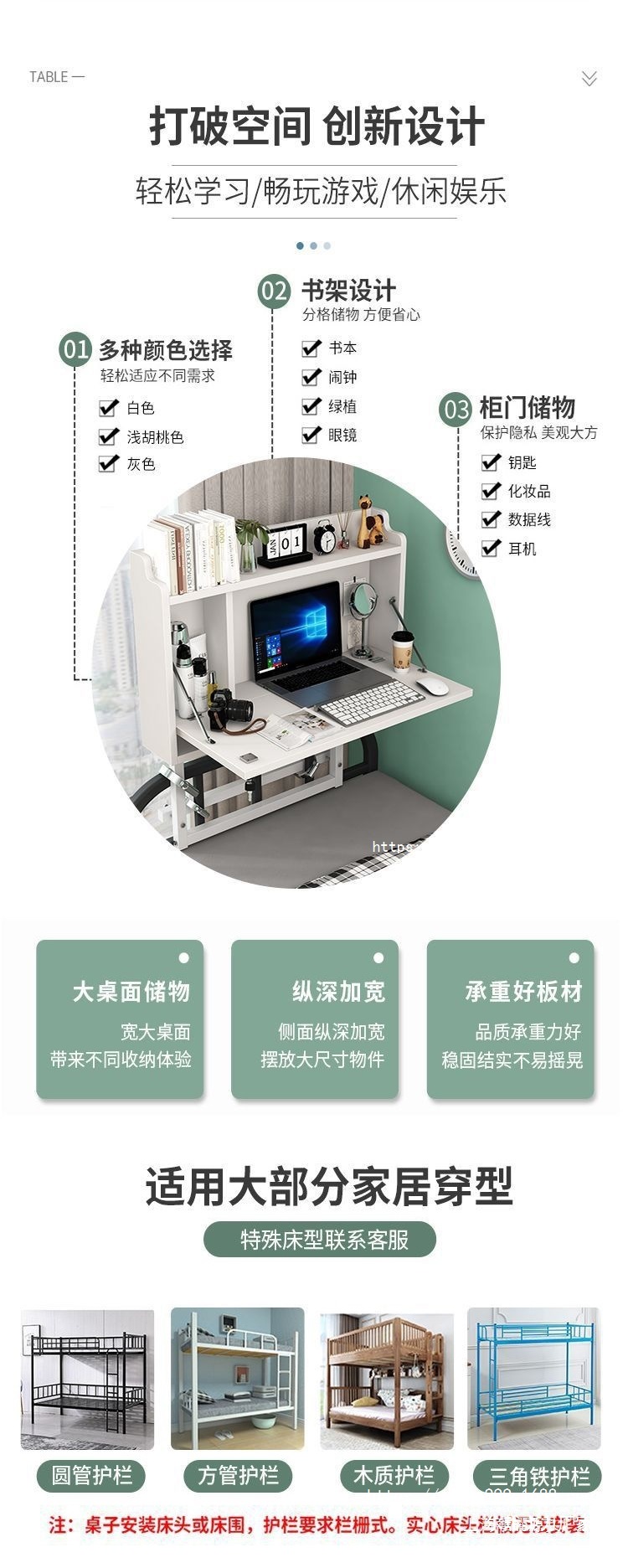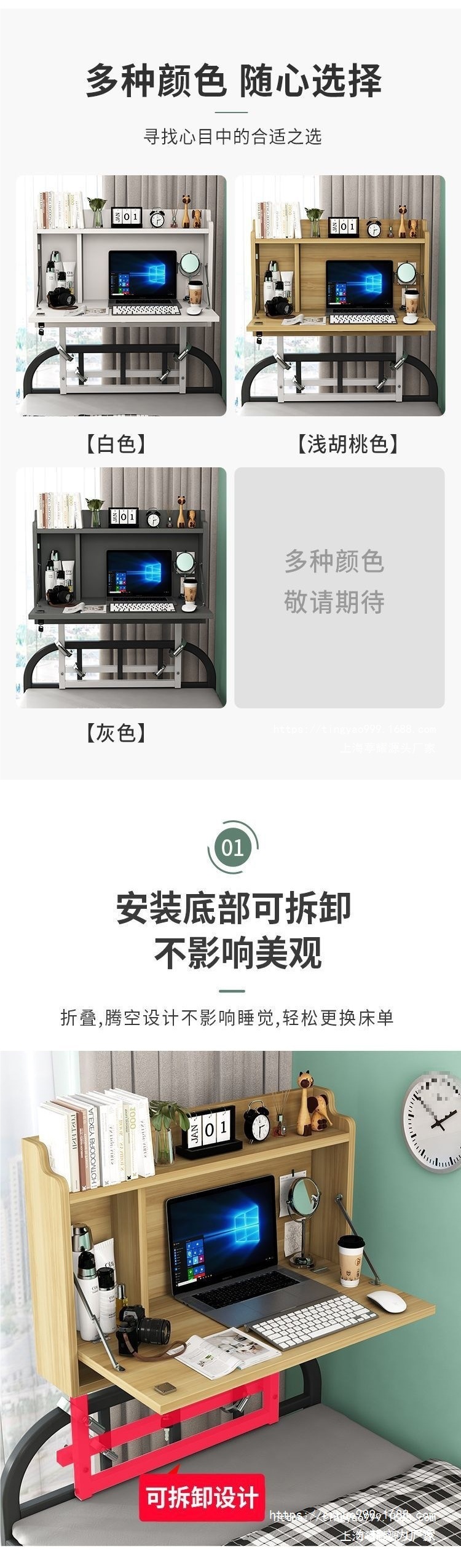 학생 침대 컴퓨터 책상 기숙사 이층 침대 테이블 기숙사 다기능 학습 테이블 침대 옆 접이식 책상스토어 가기