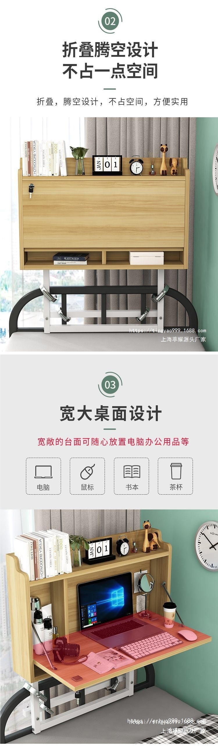 학생 침대 컴퓨터 책상 기숙사 이층 침대 테이블 기숙사 다기능 학습 테이블 침대 옆 접이식 책상