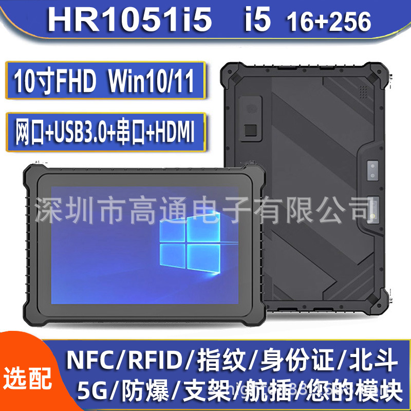 10.1寸16G+256GWindows酷睿i5/i7三防平板电脑RJ45 USB3.0母口RS232串口HDMI高清屏IP68户外工业级平板电脑厂家定制